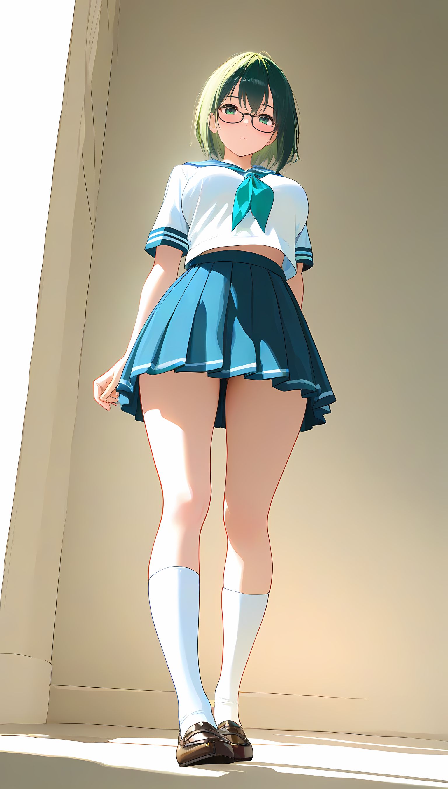 【AI生成】メガネが似合う美少女JKがおっきなおっぱい晒してくれたよ!【エロ画像】