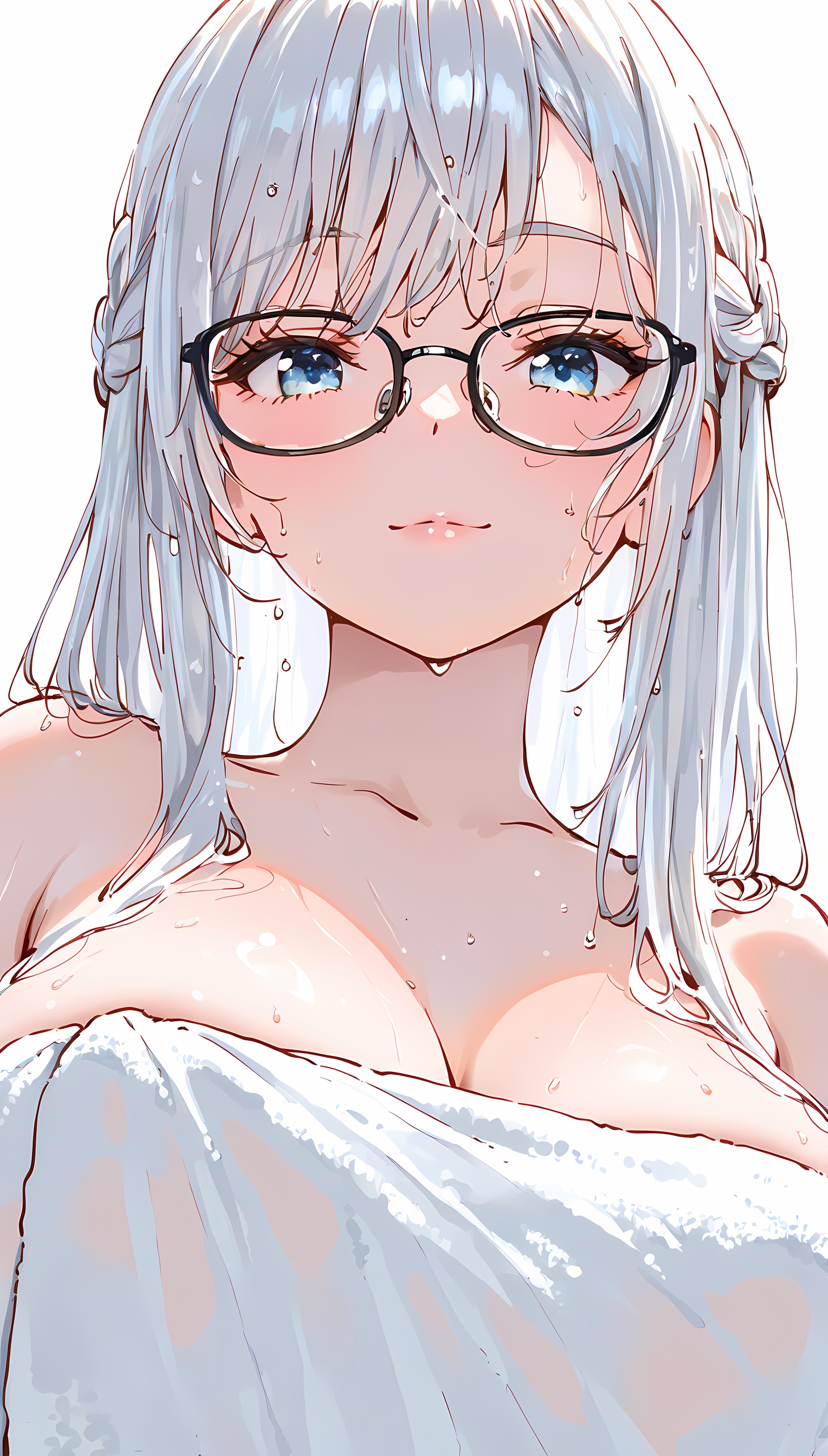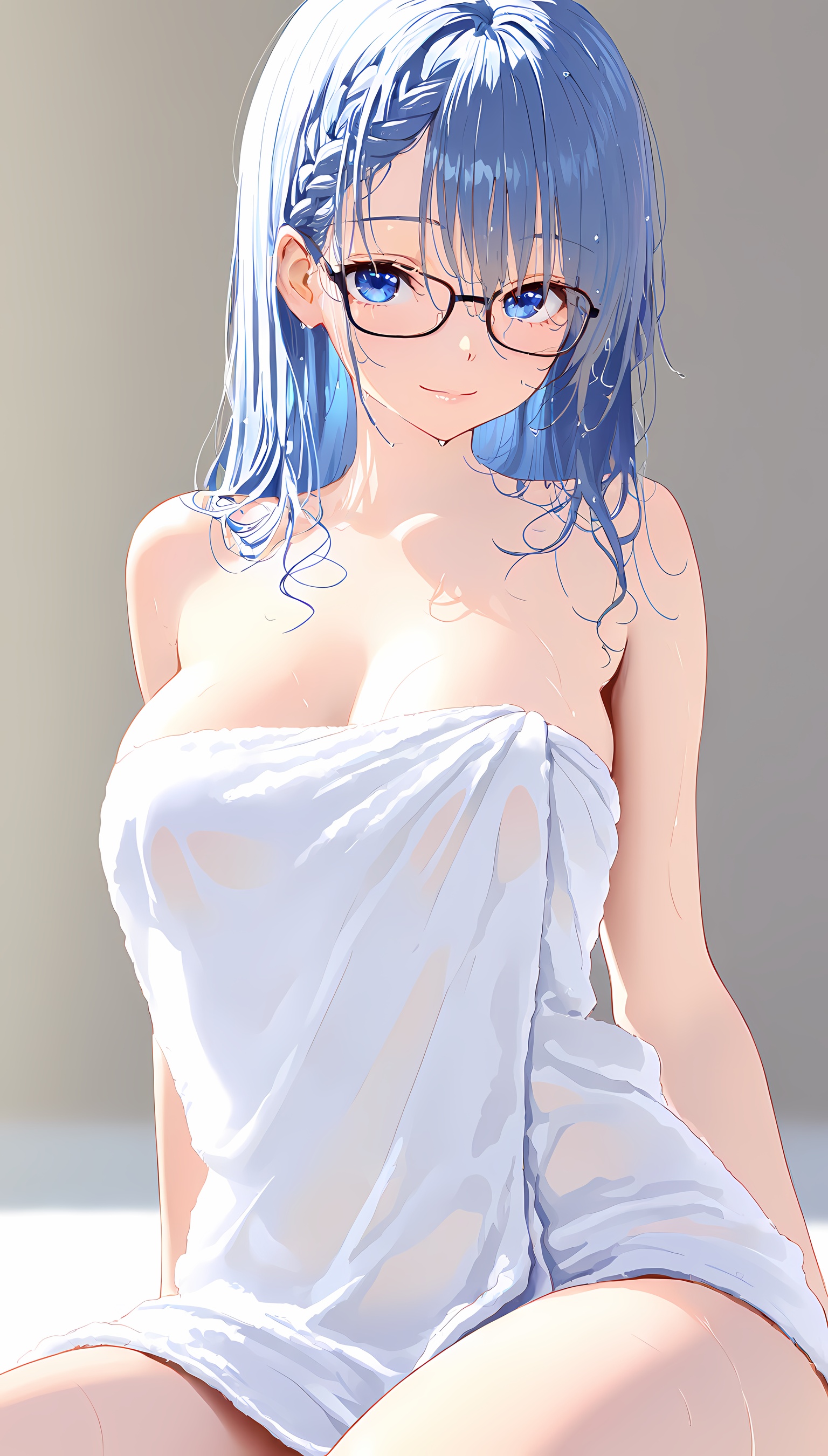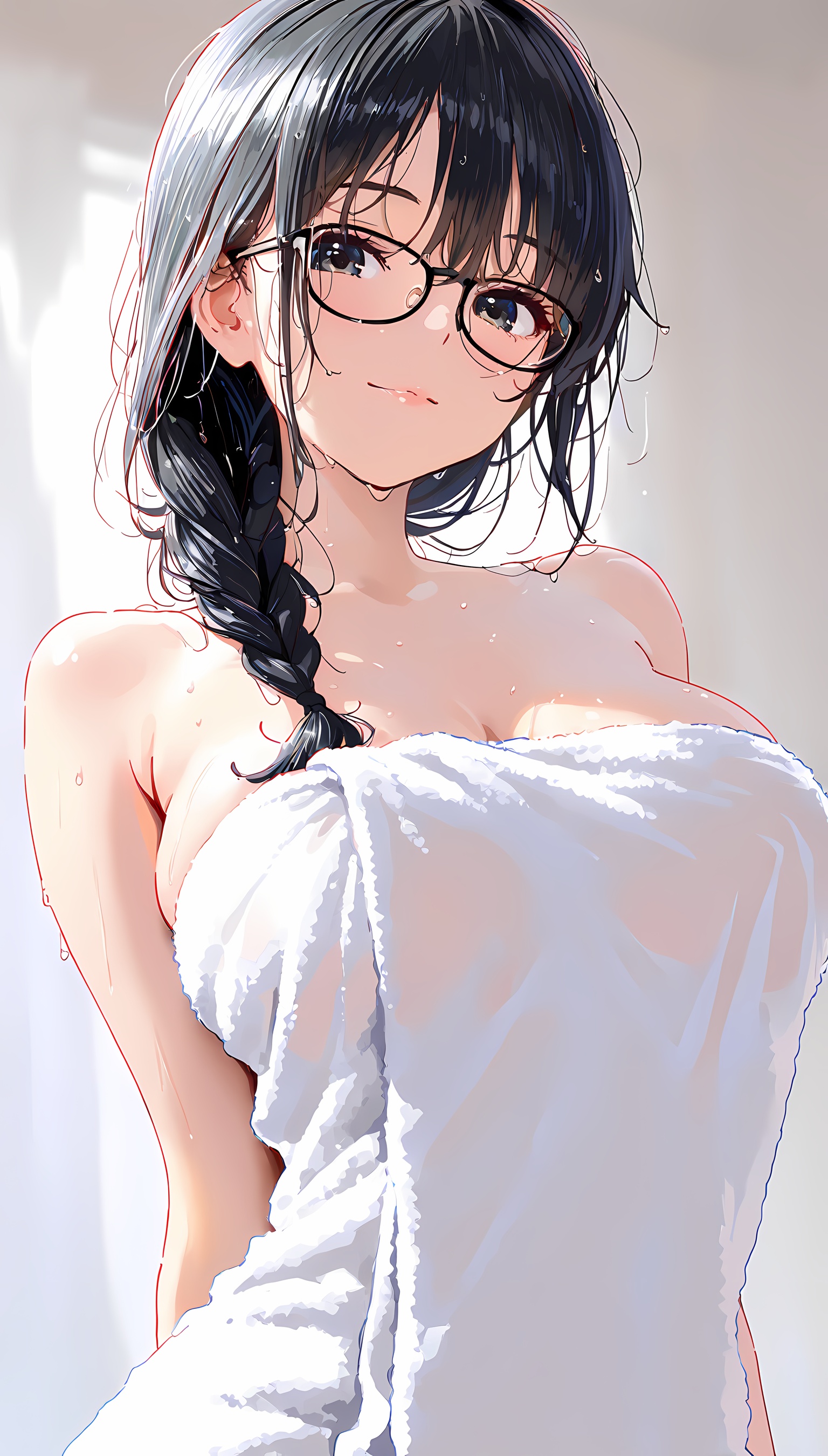 【AI美女】メガネの似合う爆乳お姉さんがそのセクシーな肢体をタオル一枚で見えつけちゃう!【2Dイラスト】