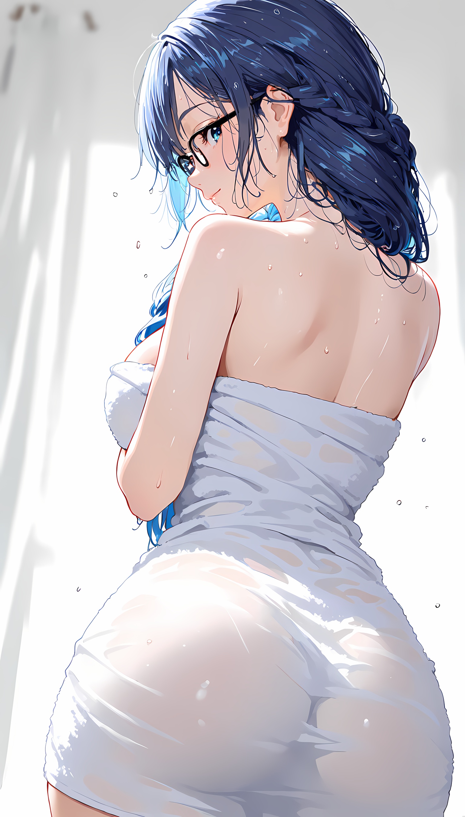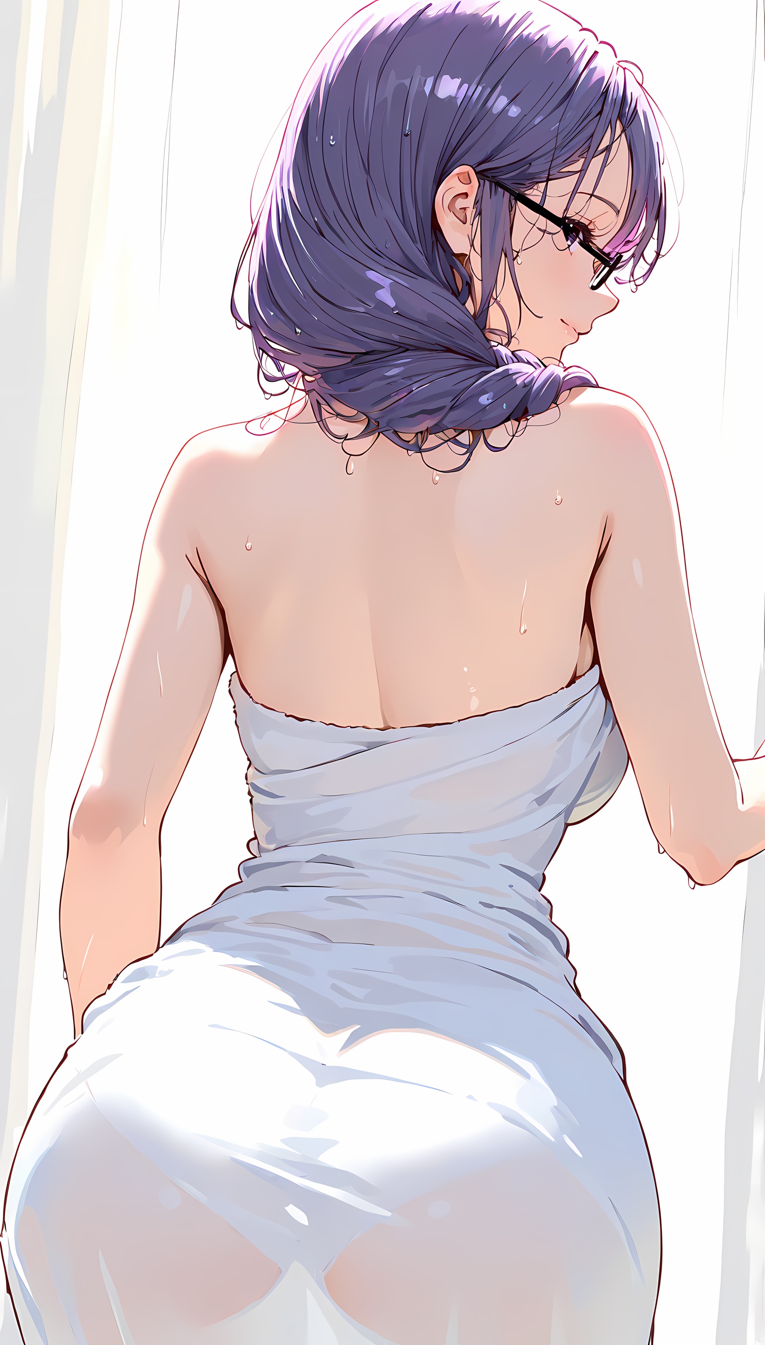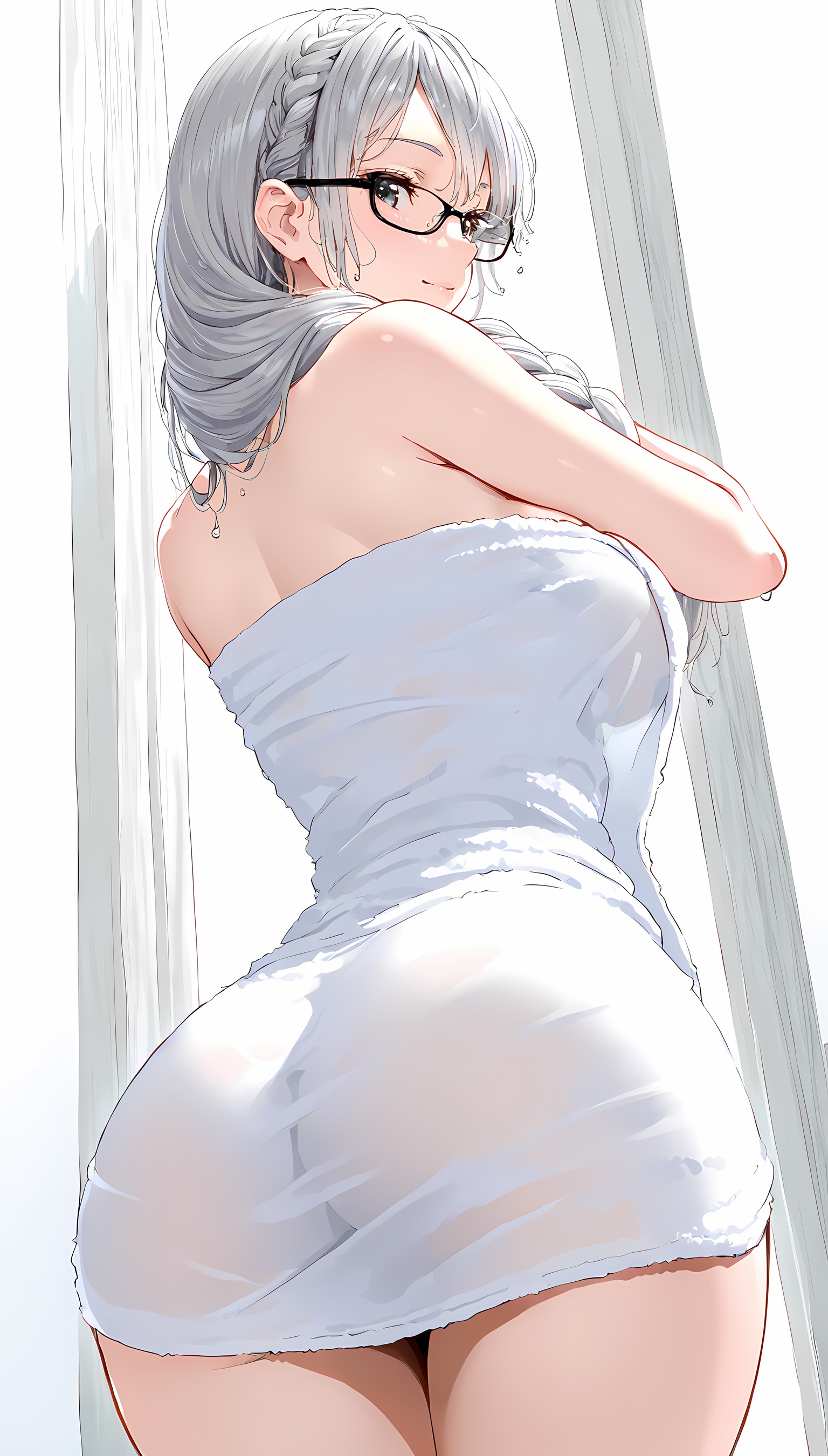 【AI美女】メガネの似合う爆乳お姉さんがそのセクシーな肢体をタオル一枚で見えつけちゃう!【2Dイラスト】