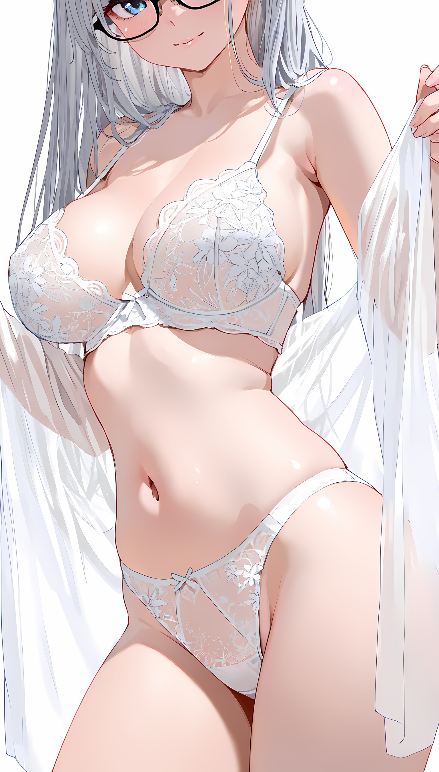 【2次元】刺繍のきれいな下着から乳首が透けててエロさが増幅されてるメガネ巨乳お姉さんのエロ画像まとめ!【AI生成】