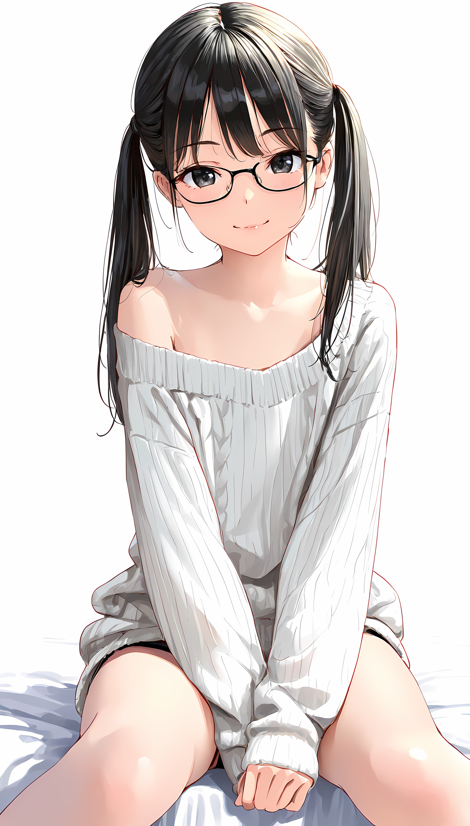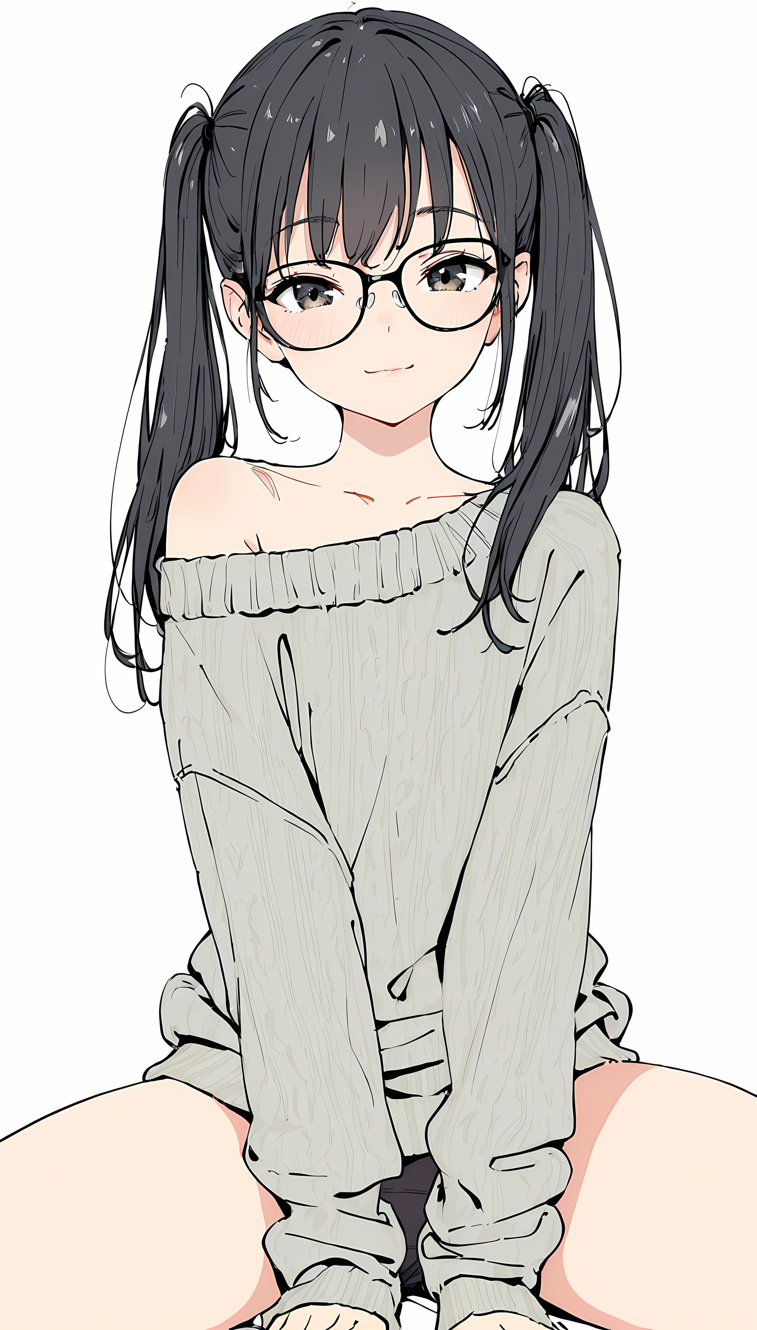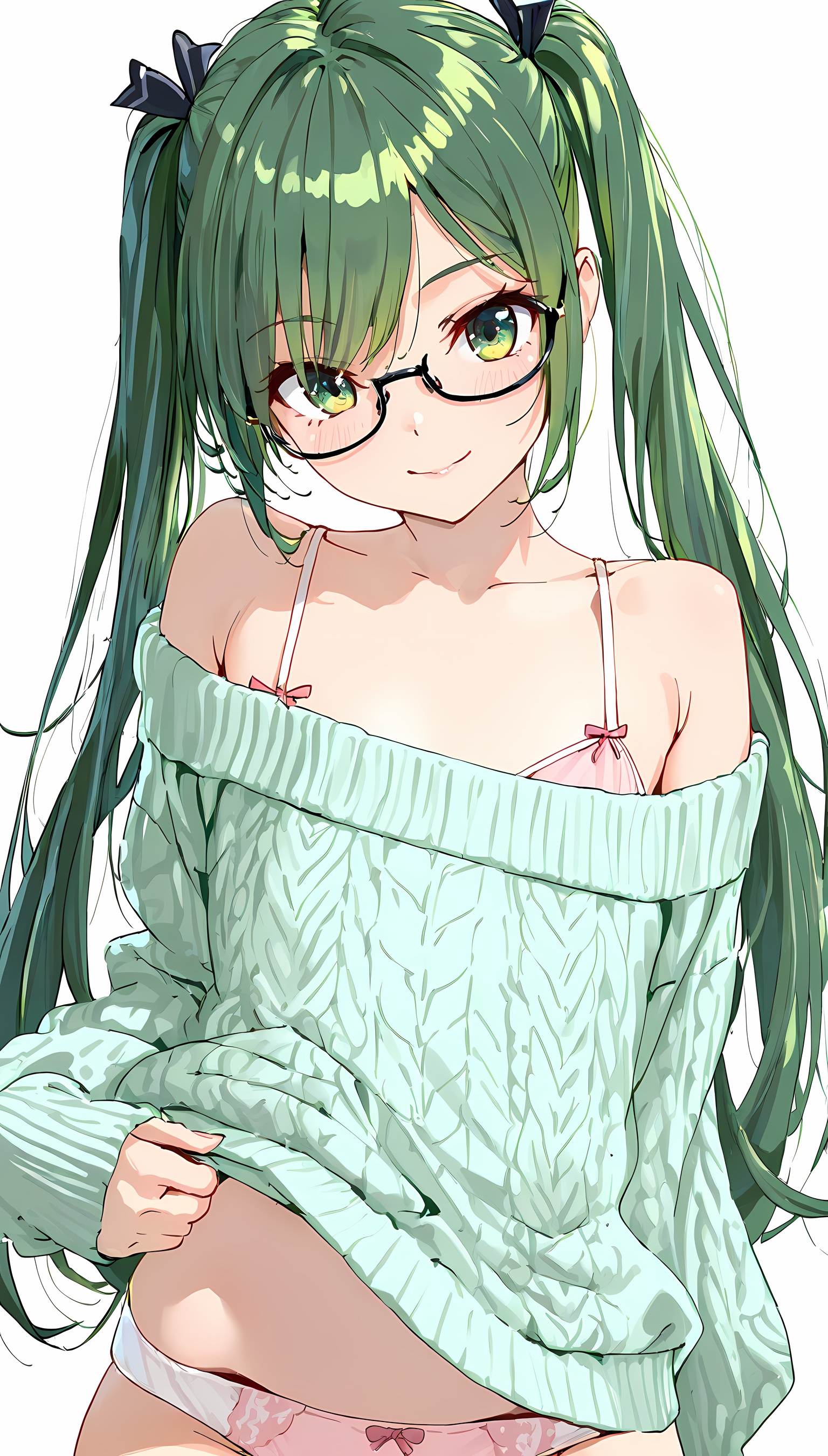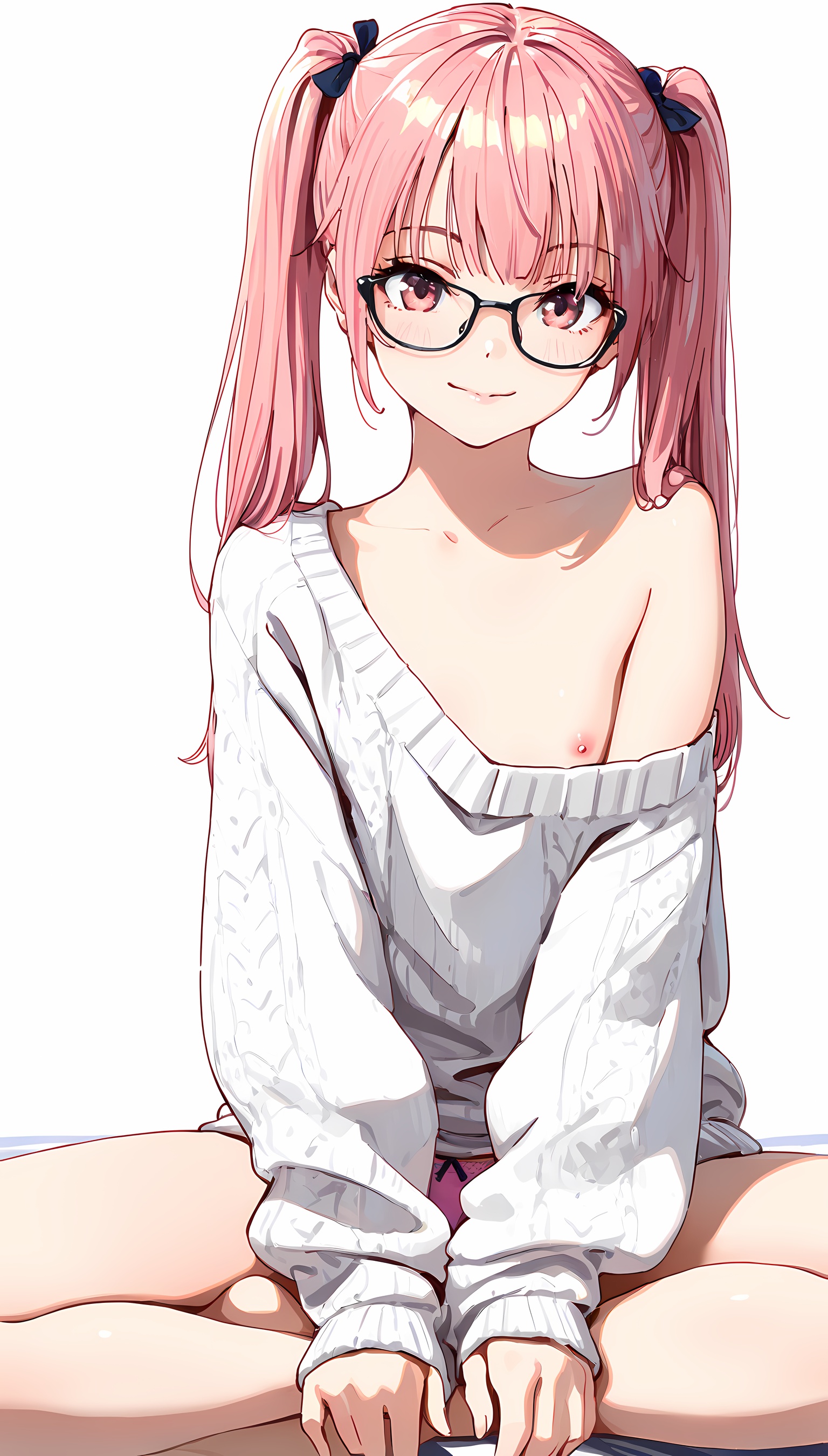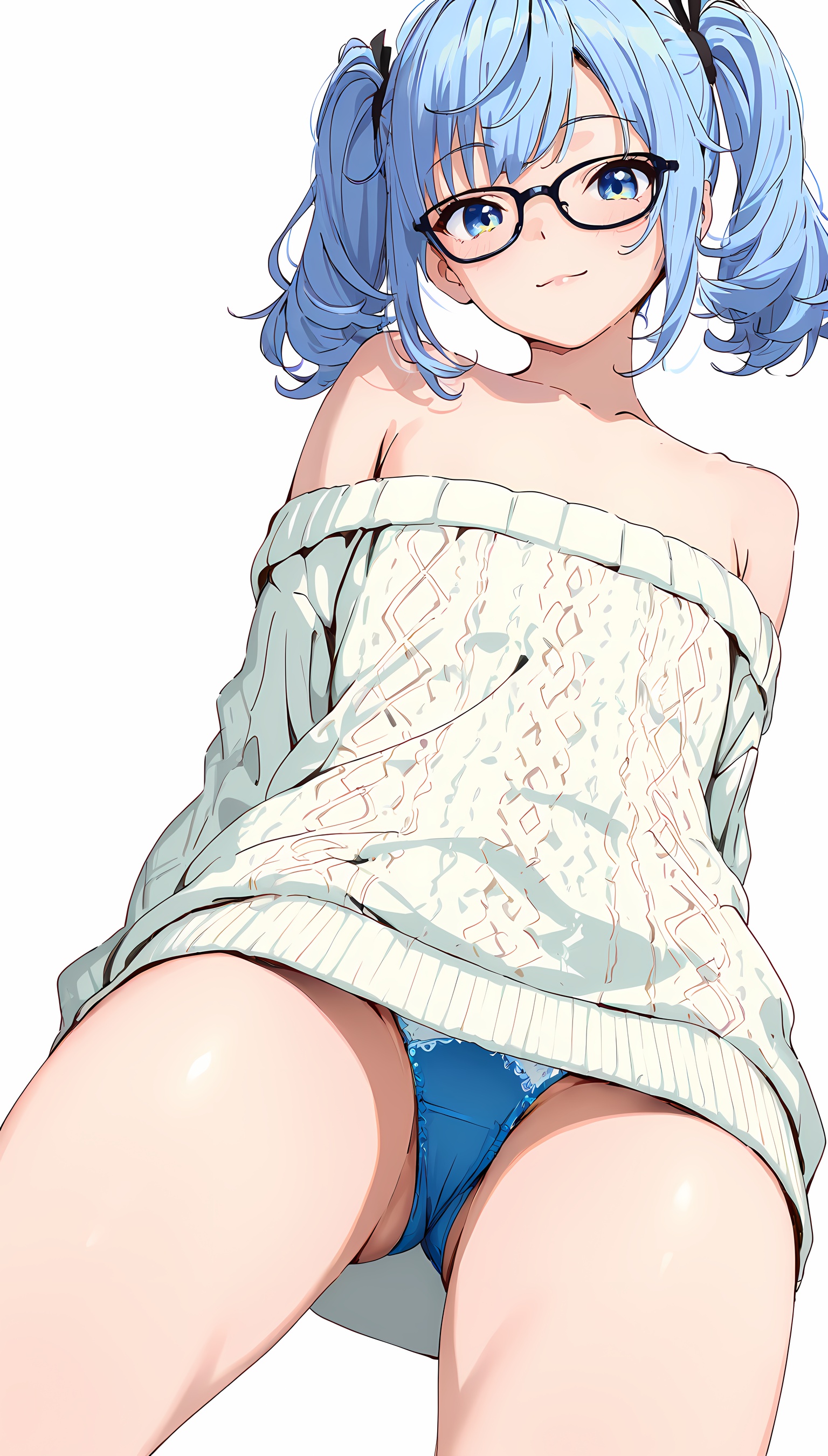【AIエロ画像】ツインテ微乳美女の肩出しニットのイラスト集!ローアングルから覗くパンツがすごくエッチです!【二次絵】