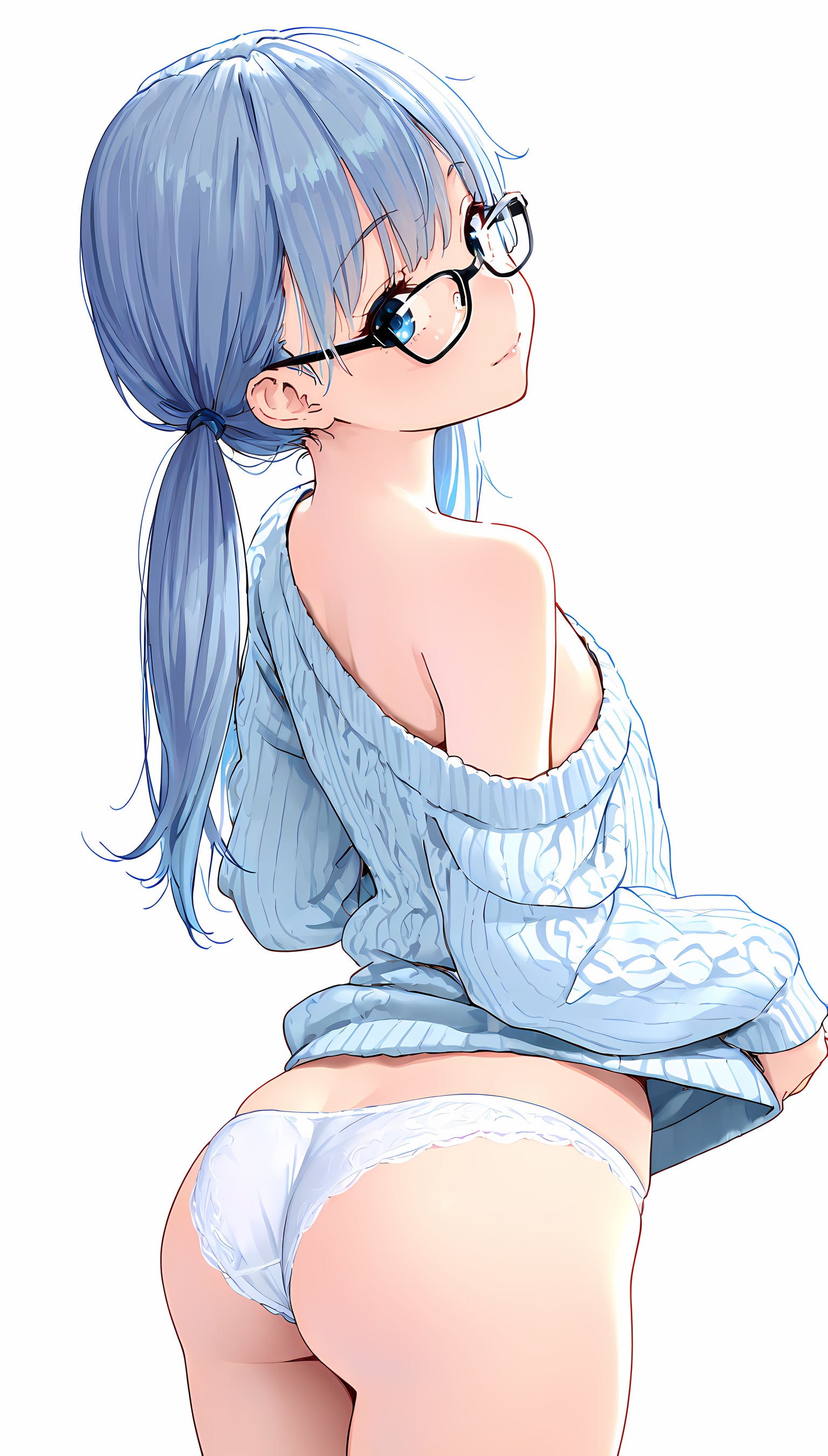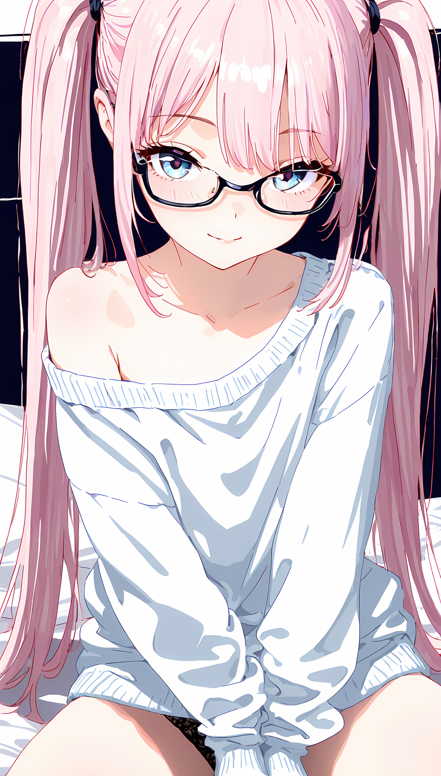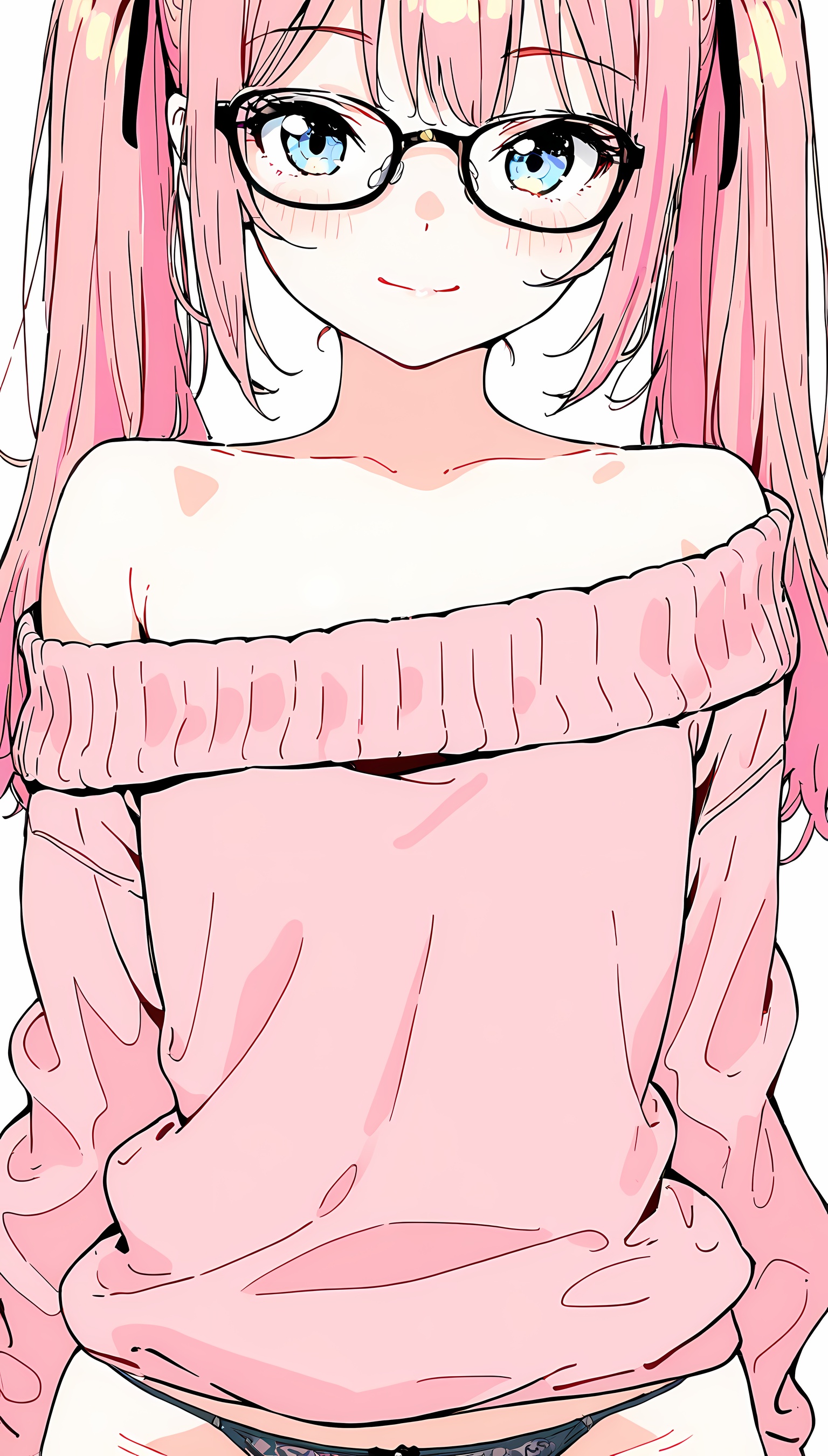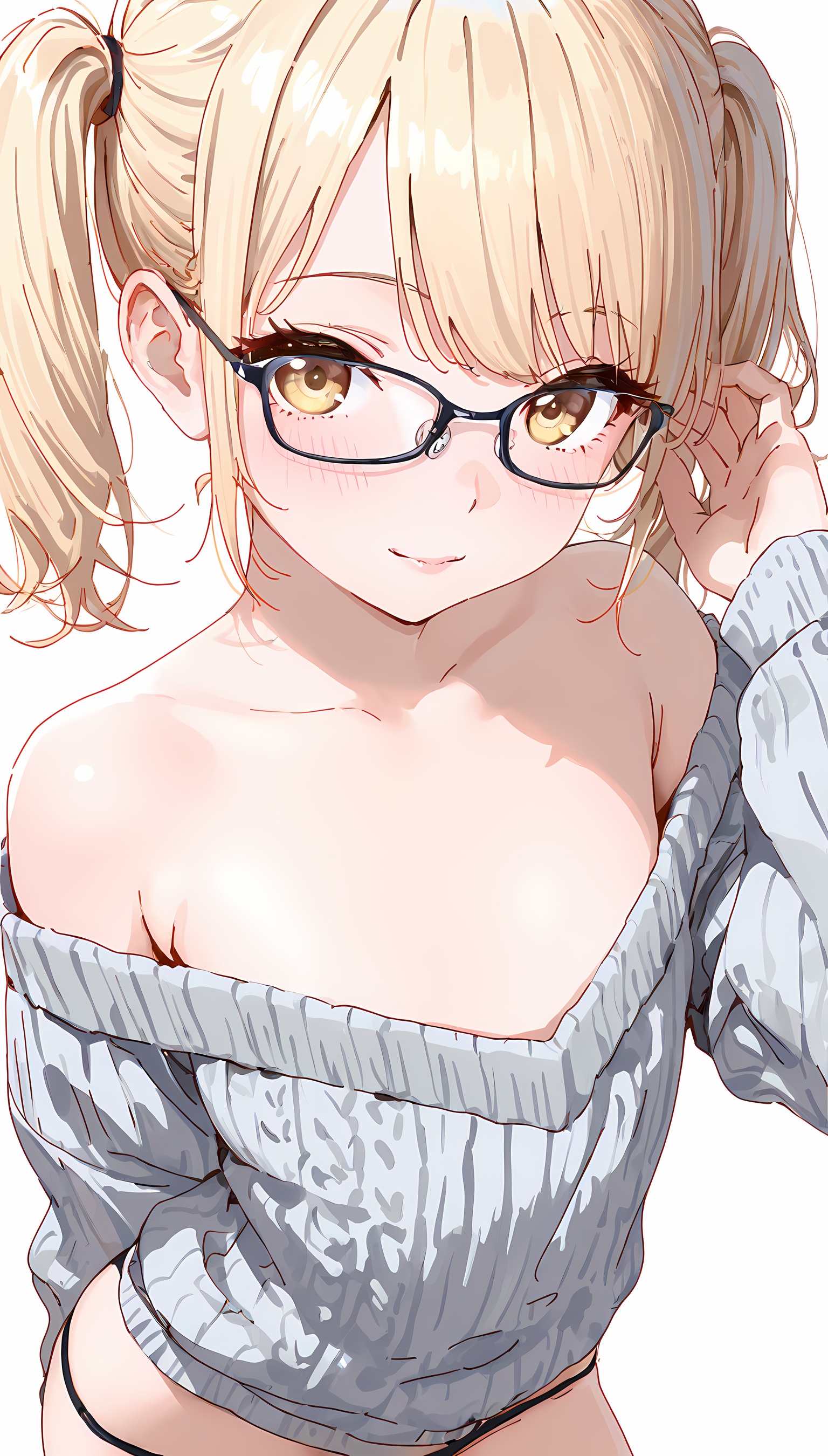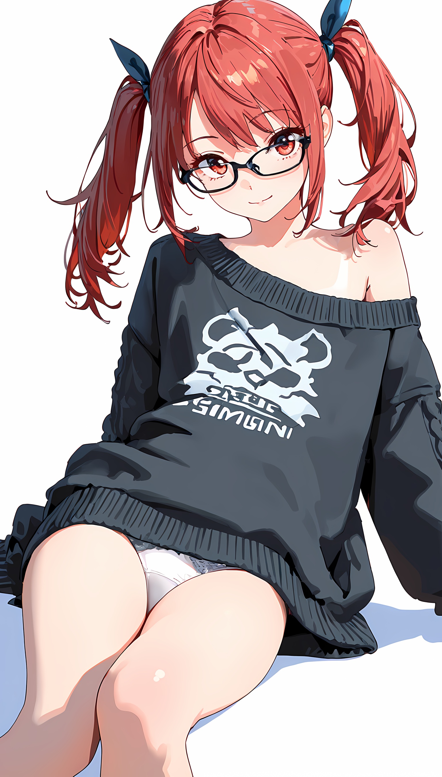 【AIエロ画像】ツインテ微乳美女の肩出しニットのイラスト集!ローアングルから覗くパンツがすごくエッチです!【二次絵】