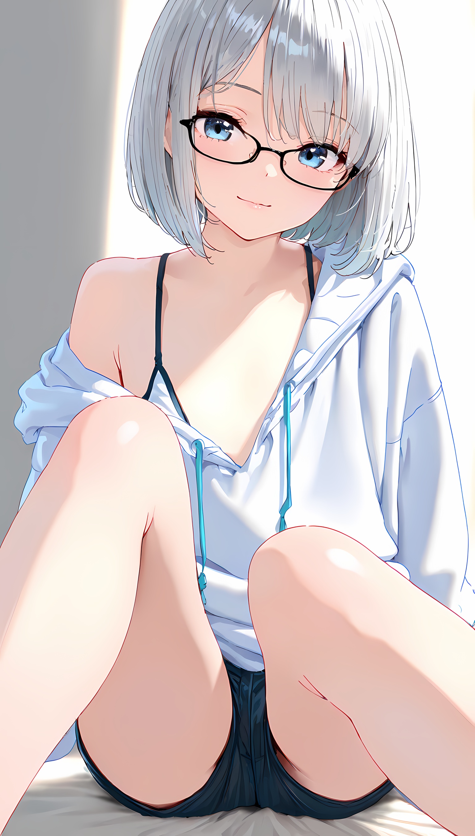 【パーカーエロ画像】ホットパンツから伸びる太ももがちょっぴりムチっとしてて間に挟まれたい感MAXです!【2次元イラスト】