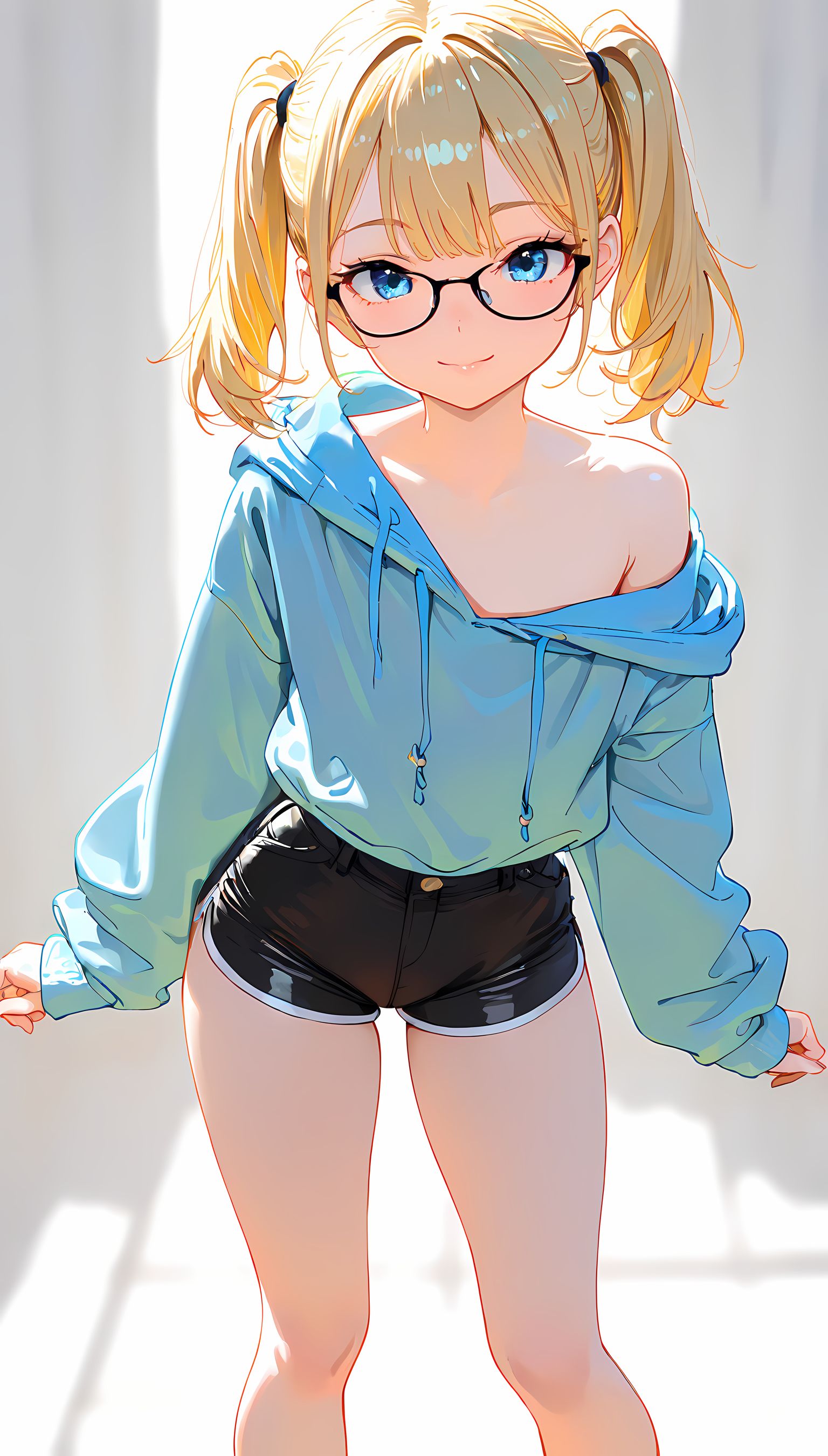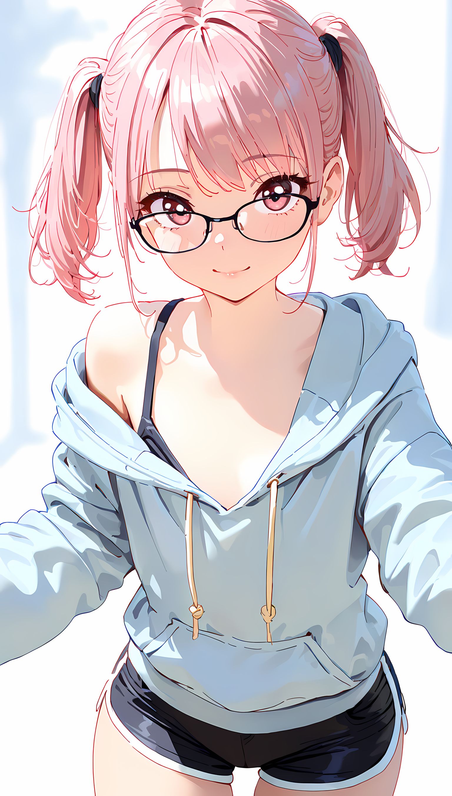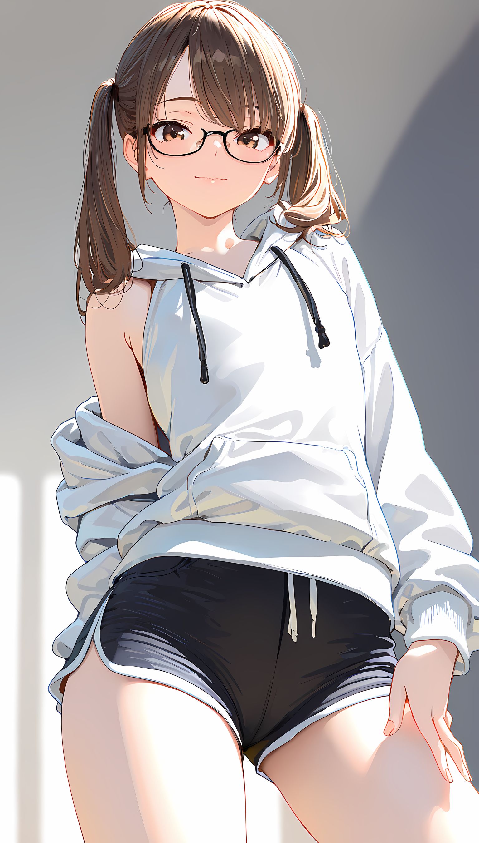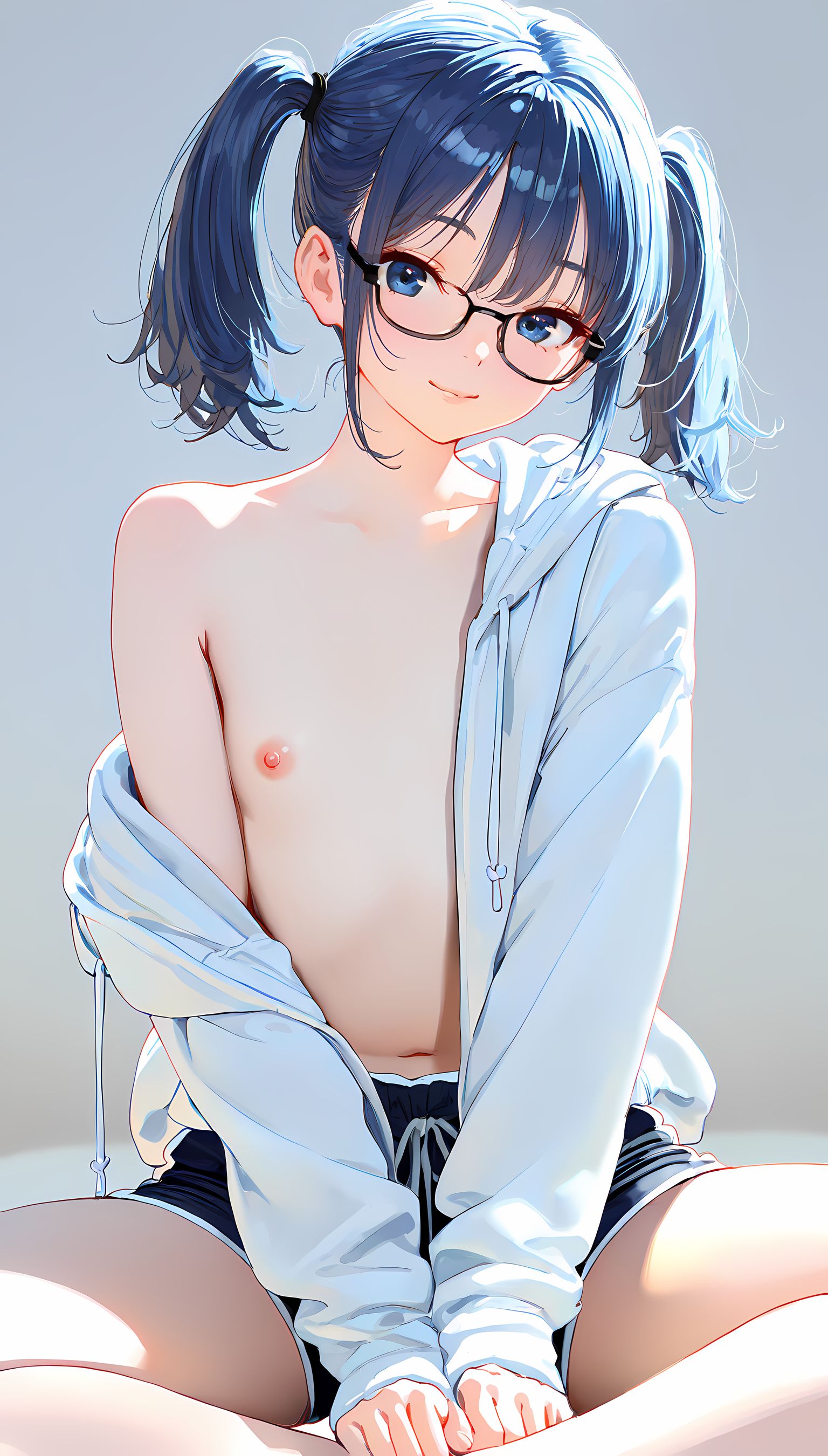 【AIイラスト】パーカー半脱ぎで見えるおっぱいとかショートパンツから伸びる太ももがとにかくエロいです!【二次絵 】