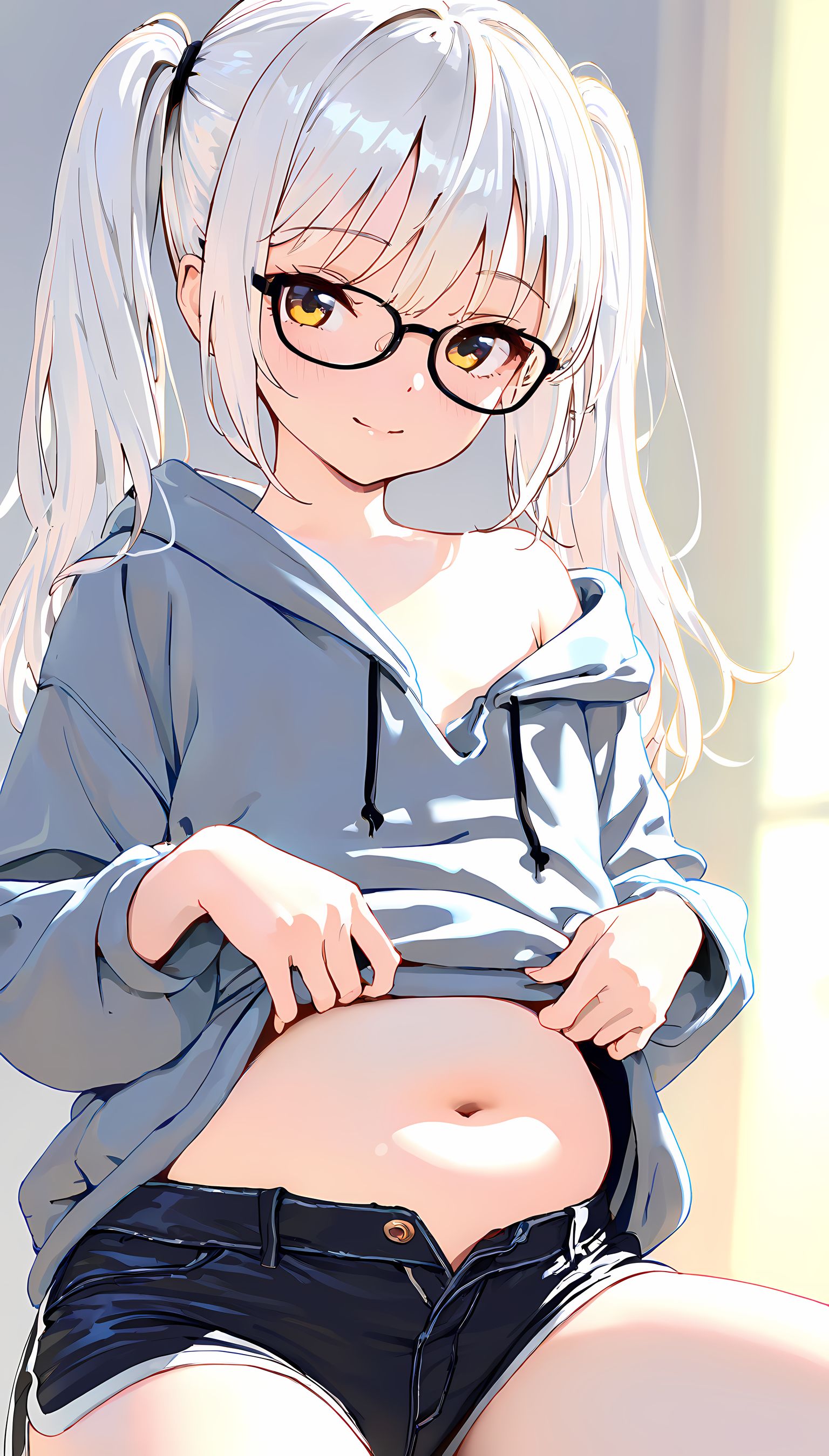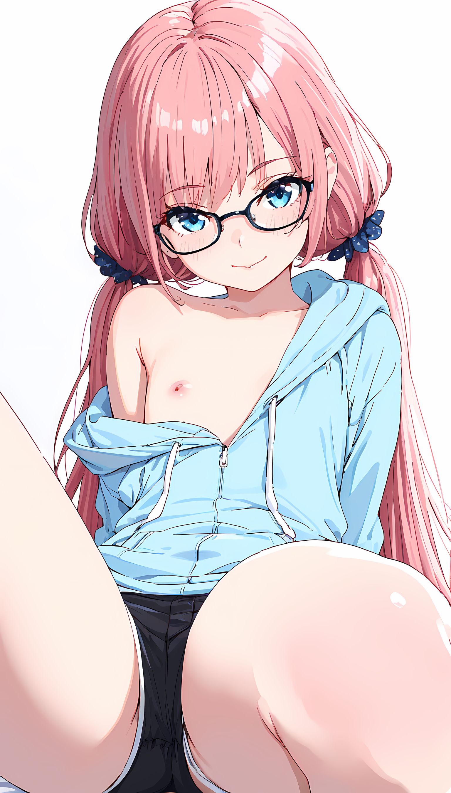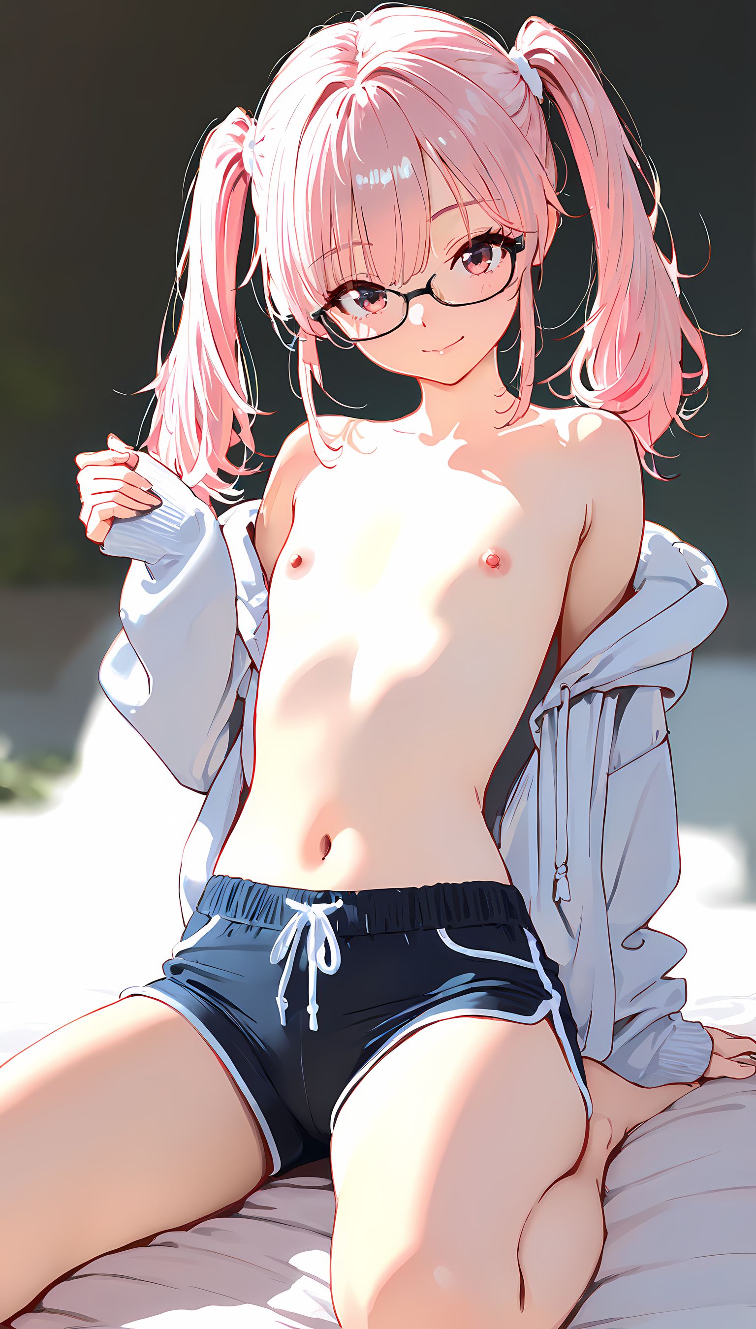 【AIイラスト】パーカー半脱ぎで見えるおっぱいとかショートパンツから伸びる太ももがとにかくエロいです!【二次絵 】