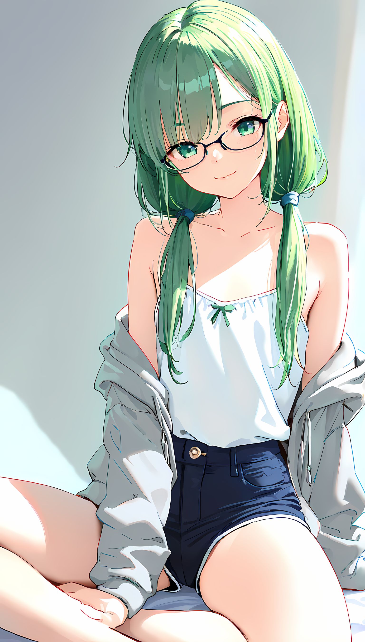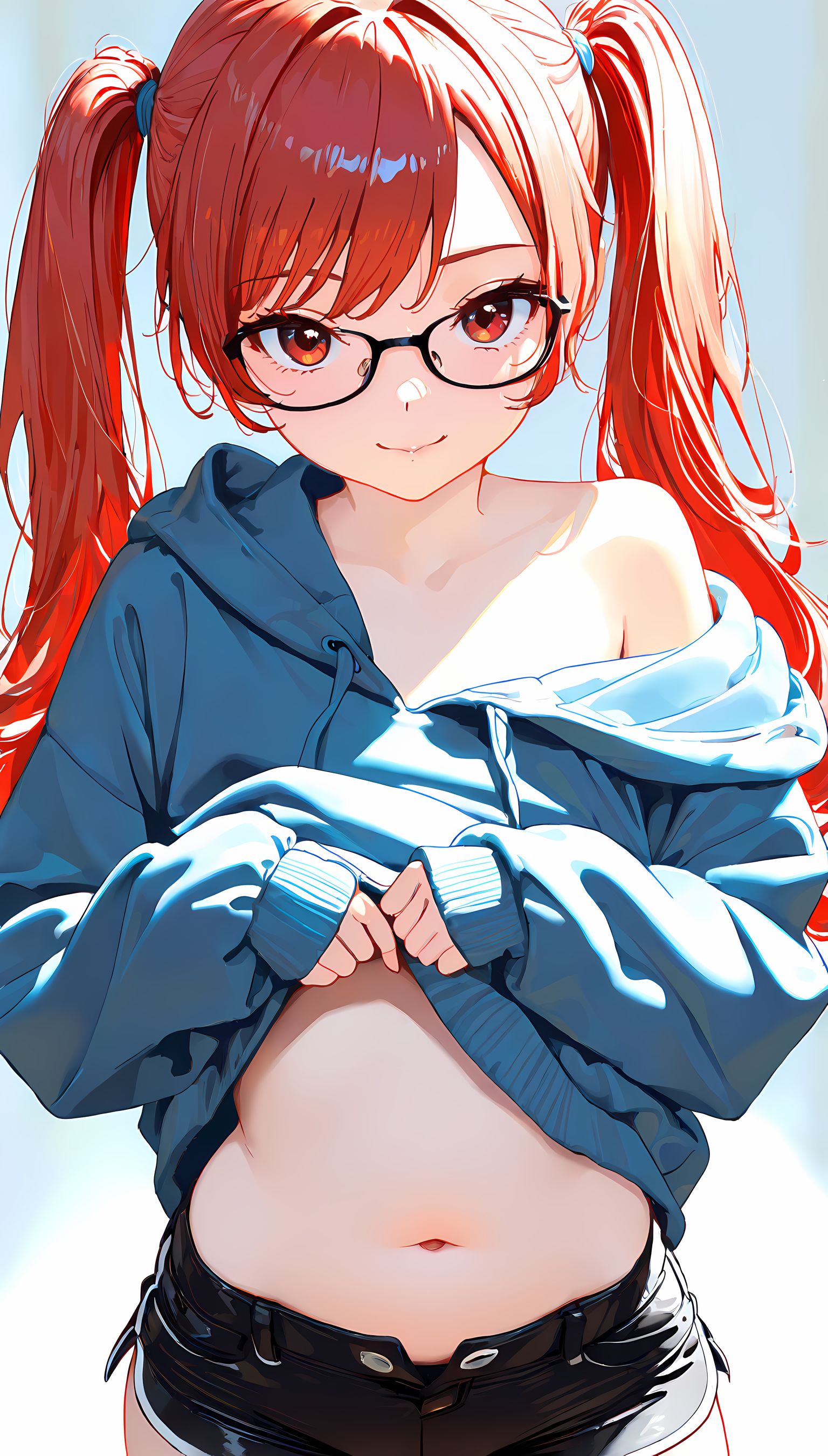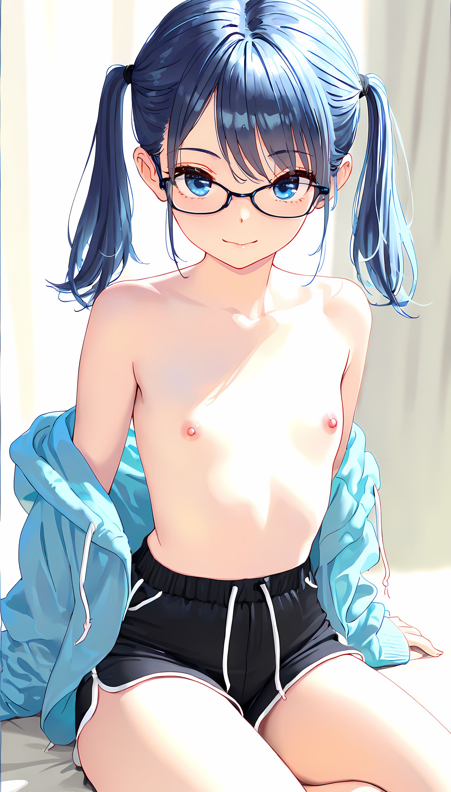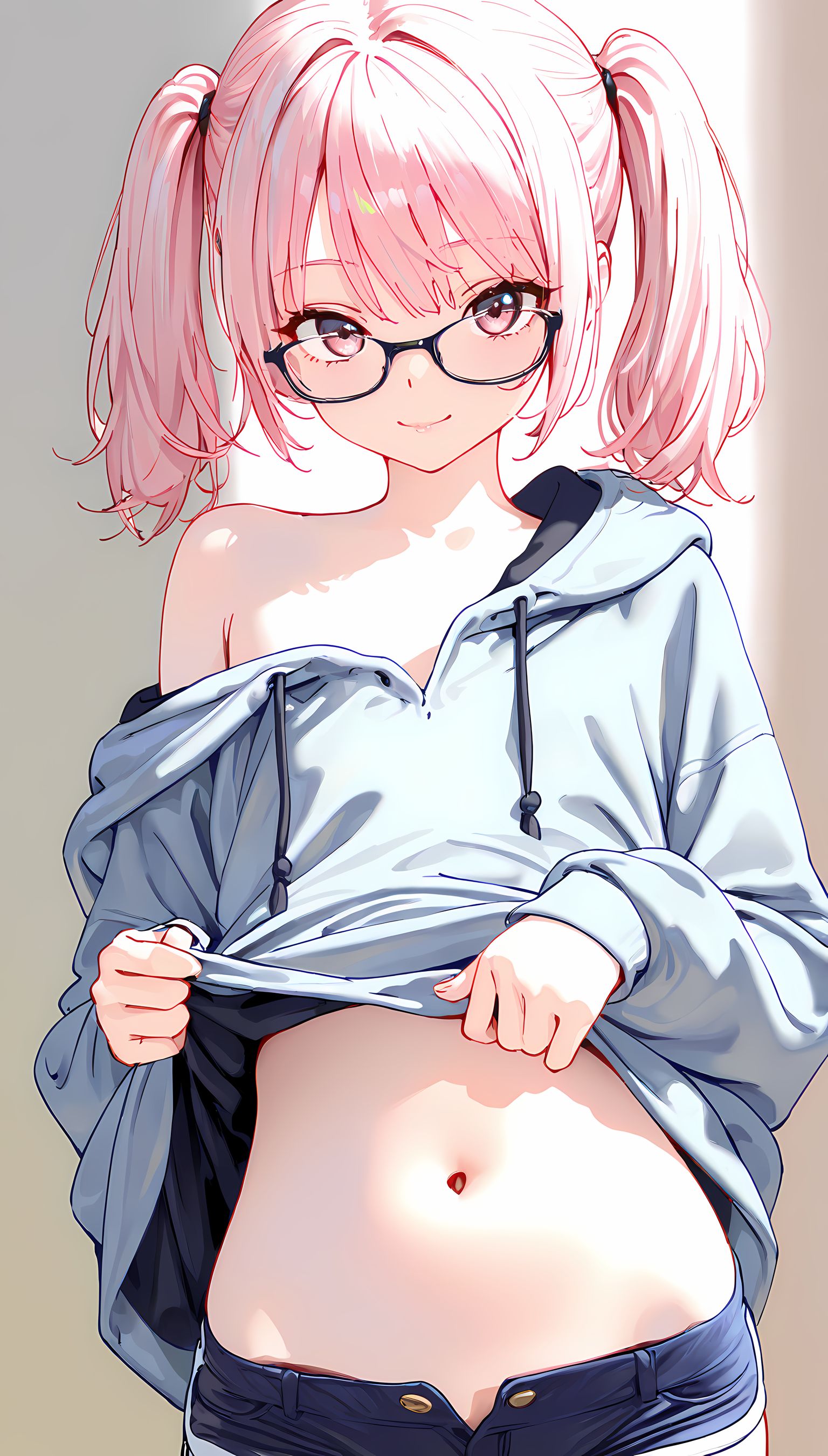 【AIイラスト】パーカー半脱ぎで見えるおっぱいとかショートパンツから伸びる太ももがとにかくエロいです!【二次絵 】