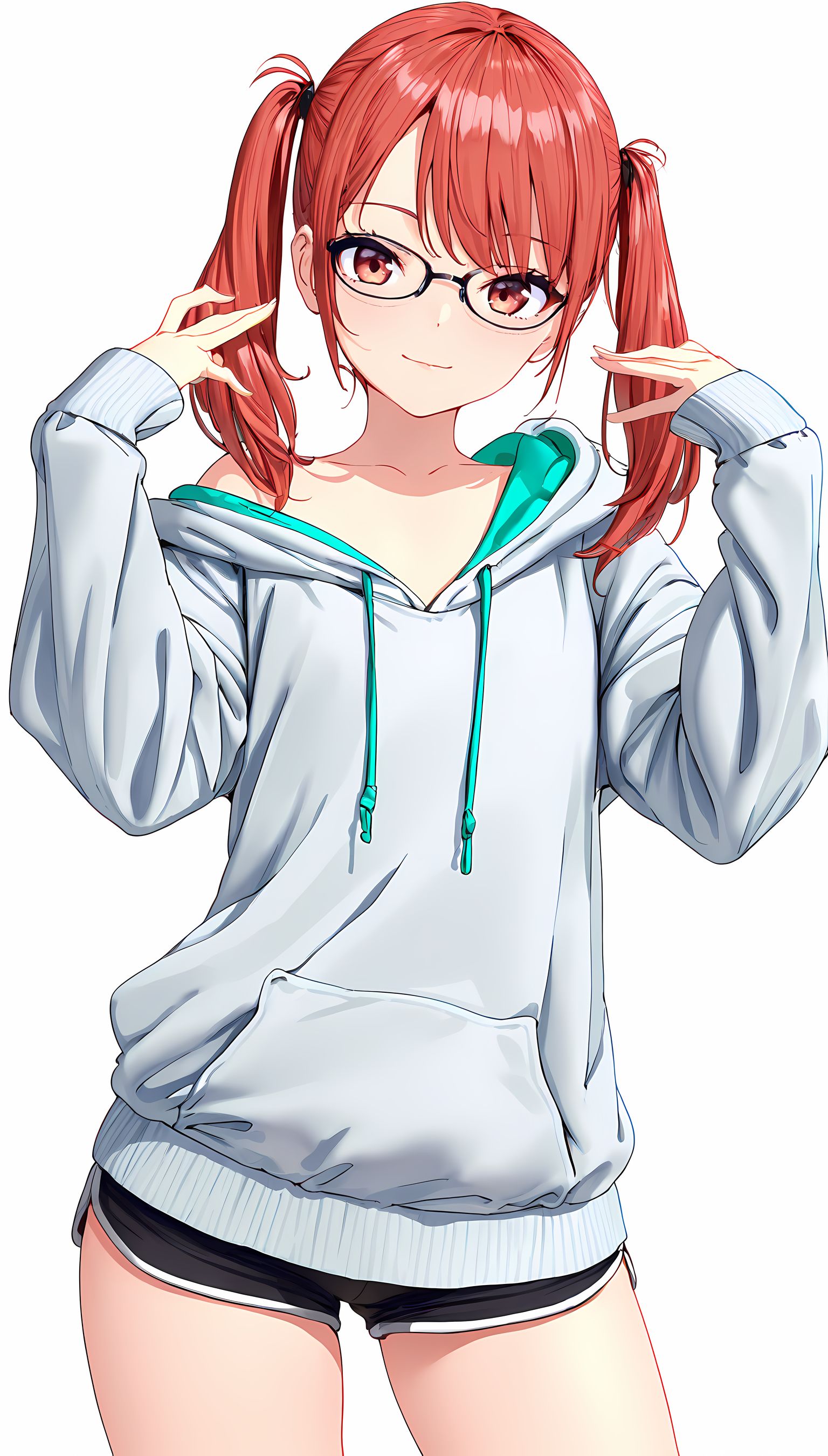 ツインテール, パーカー, メガネ, 微乳, 特徴, 衣装, 髪型