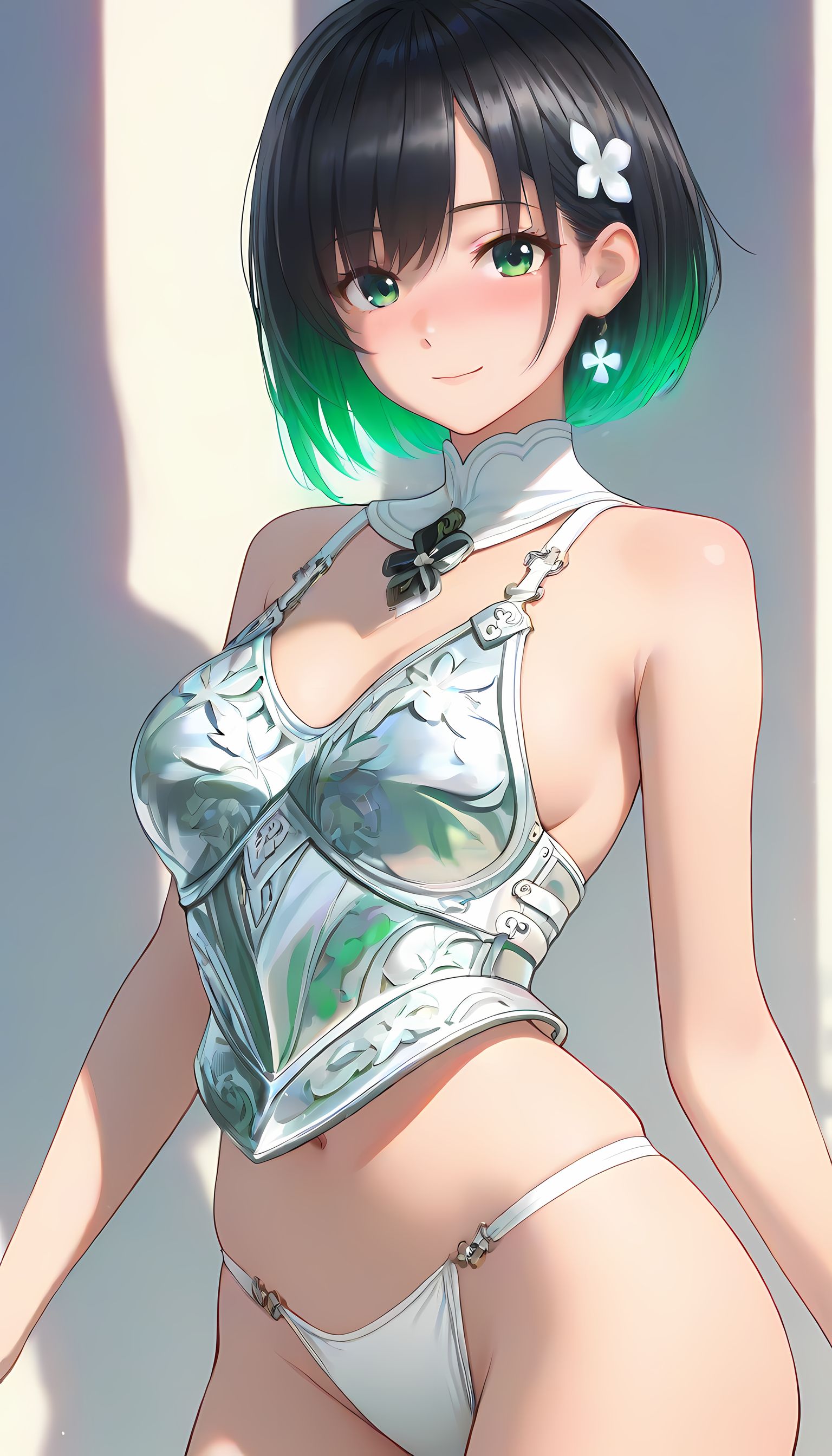 翠乃もえが着る「bikini」衣装のAIイラスト集です。 夏の日差しを浴びて輝くビキニ姿の女の子たち。鮮やかな色合いが水辺で生き生きと躍動するデザインは、見る人の心を奪う美しさだ。細部までこだわりぬいた質感と大胆なシルエットが織り成す見えそうで見えない感じは、思わず目を離せなくなるほど魅力的である。開放的なビーチやプールサイドで見せる自然な表情やポーズからは、爽やかな色気と可愛らしさがにじみ出る。この夏の思い出にぴったりの一コマとなること間違いなし。また、他の衣装カテゴリもチェックしてみてはいかがだろうか。メイド服や制服など、様々な魅力を引き立ててくれるデザインがあなたを待っている。