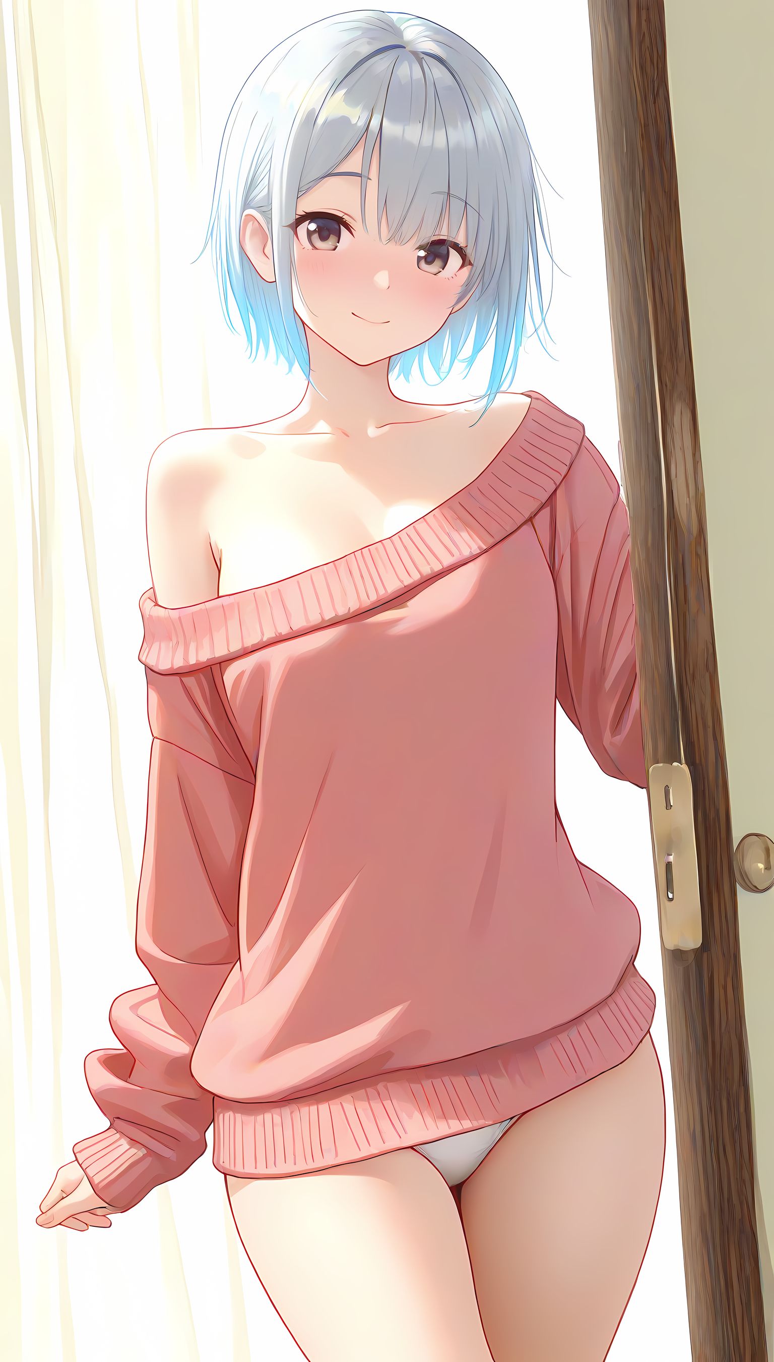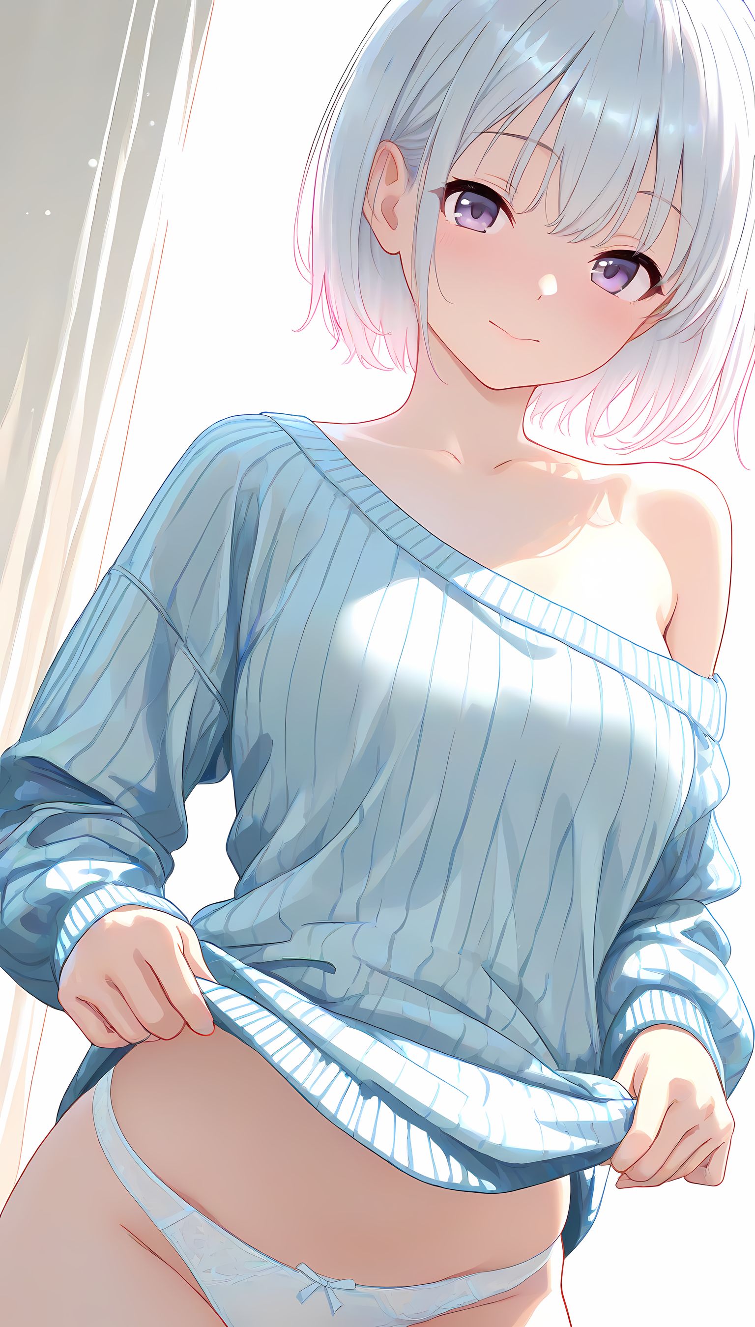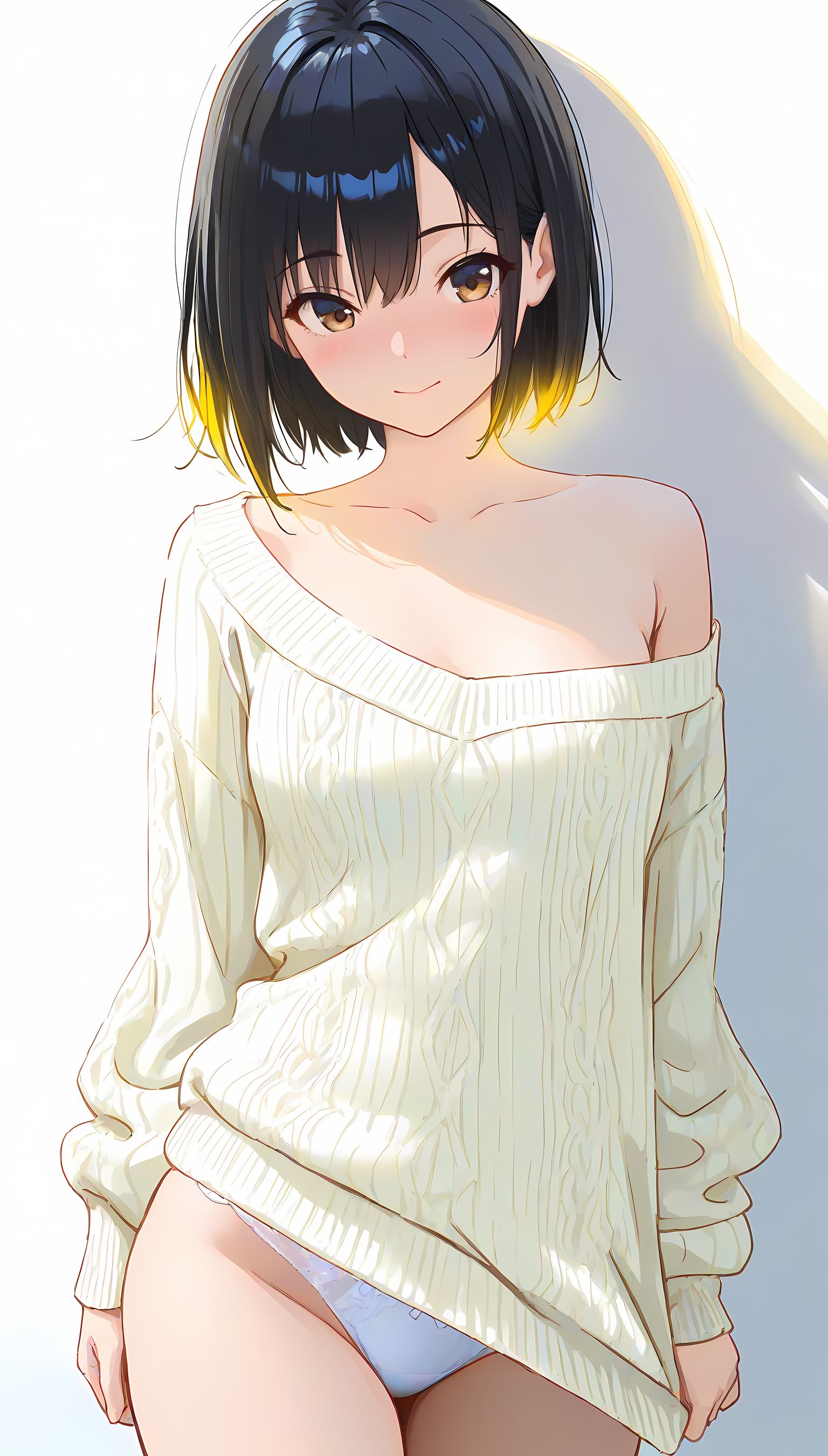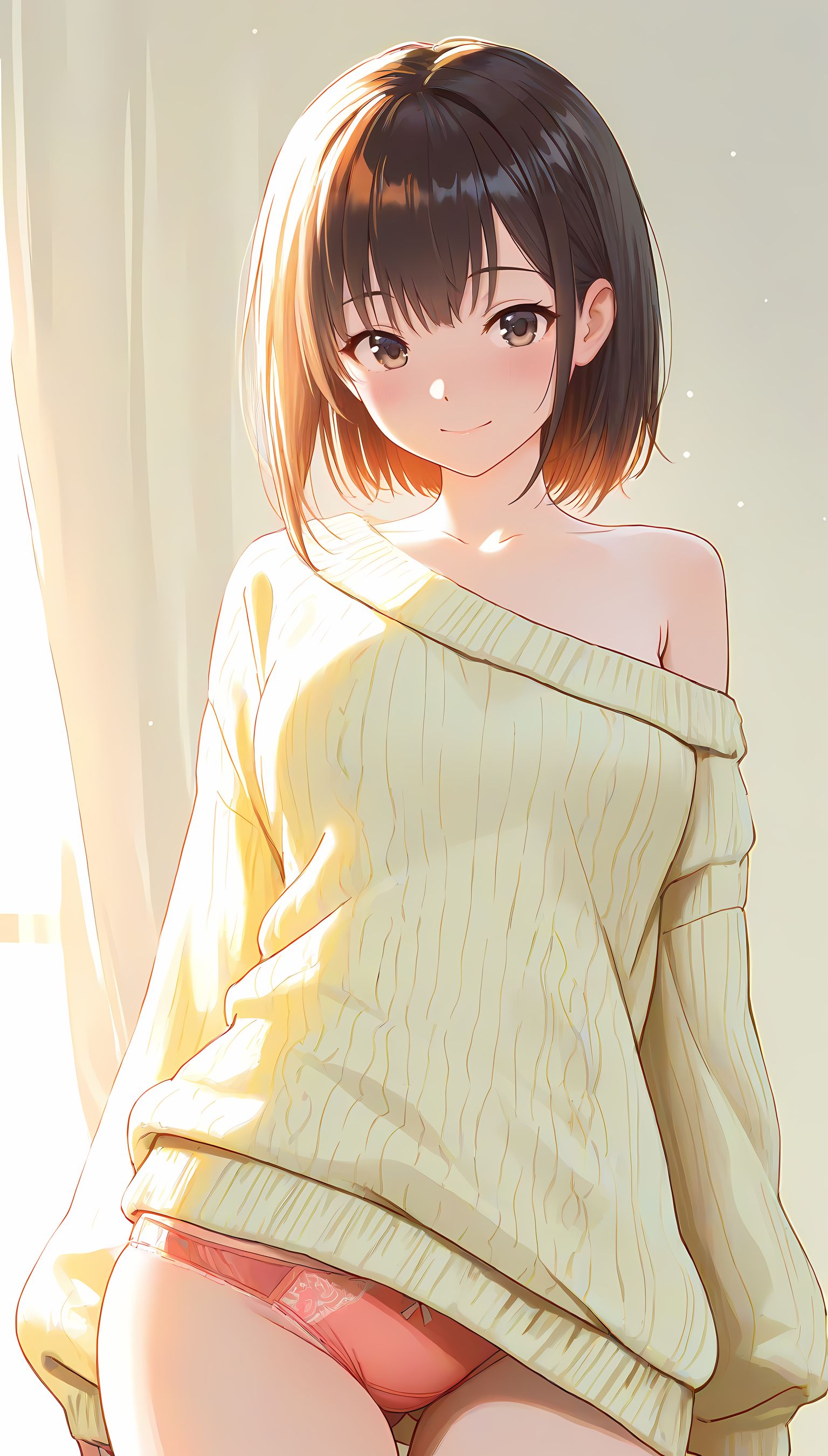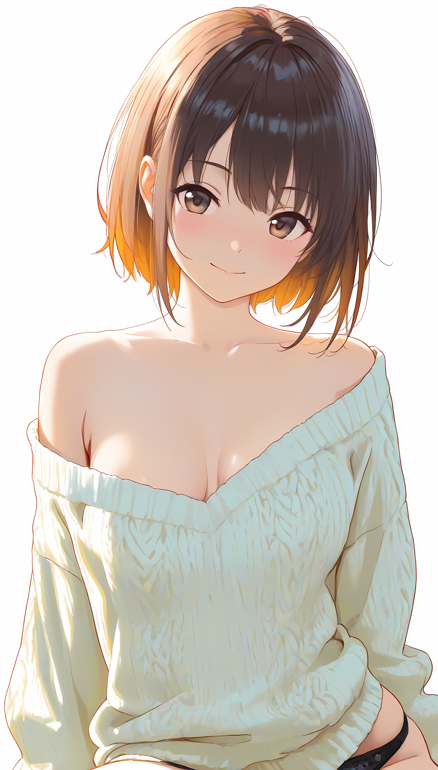 春爛漫の日差しに溶け込むように、肩出しニットはその柔らかな質感とデザインで女性らしい魅力を引き立てます。淡い色合いが春空に映える一枚は、胸元からほんのり覗く肌が色気を感じさせ、袖口からのぞくシルエットが女性のしなやかさを強調します。公園のベンチで読書をする少女のように、自然体でのポーズと穏やかな表情が、優しい雰囲気を醸し出します。この一枚は春らしいコーディネートに欠かせない存在感があり、可愛いだけではなく大人の女性の魅力も引き立てます。肩出しニットの魅力を感じたら、ぜひ他の衣装カテゴリにも目を向けてみてください。メイド服や制服など、様々なシチュエーションで楽しむことができますよ。