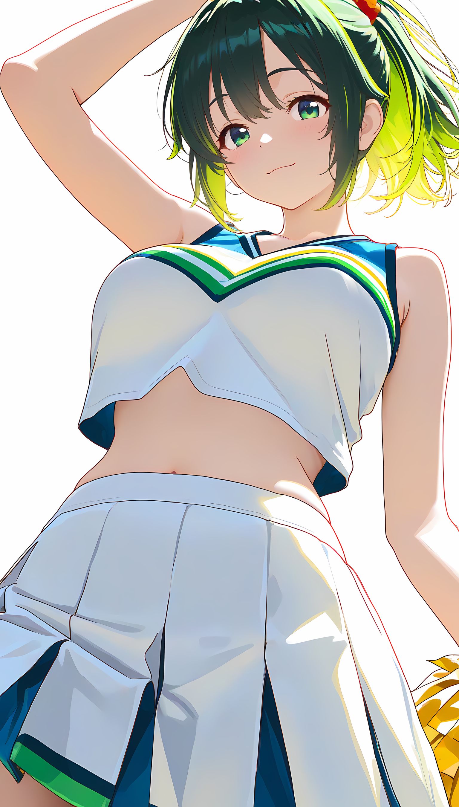 春風が心地よい公園で、チアガールたちのエネルギッシュな姿が目を引きます。鮮やかな色合いのミニスカートと大胆なレッグラインが、動きに合わせて躍動感たっぷりに揺れています。透け感のあるトップスからは、汗ばんだ肌がほんのりと覗き、その質感とシルエットが魅力的です。爽やかな笑顔を浮かべながら、ポーズを取る彼女たちの表情には、どこか色気も感じられます。チアリーディングの練習中なのか、汗に濡れた髪が額にかかり、より一層可愛らしさを引き立てます。そんな彼女たちのコーディネートは、春の風景と見事に調和し、訪れる人々の心をわくわくさせます。チアガールの衣装に興味を持った方は、サイト内のメイド服や制服など、他の魅力的な衣装カテゴリもぜひチェックしてみてください。