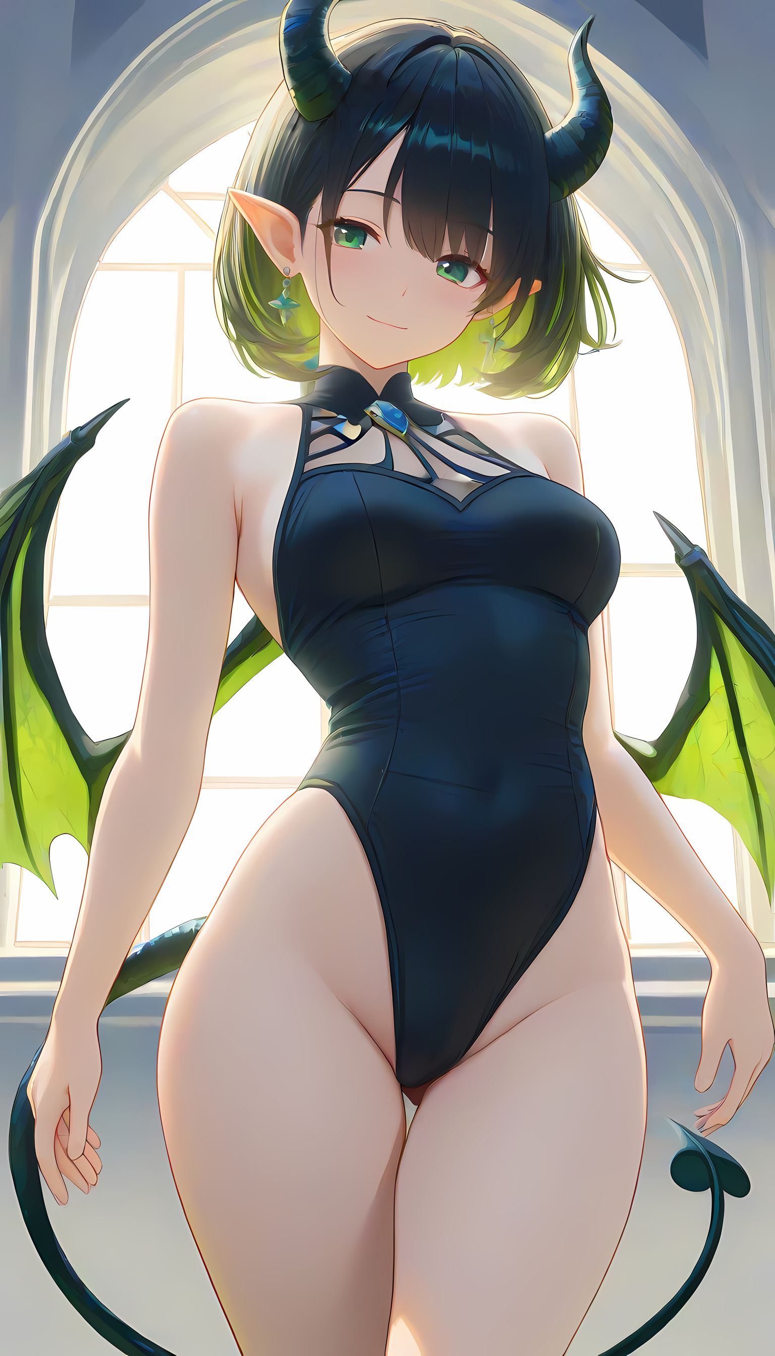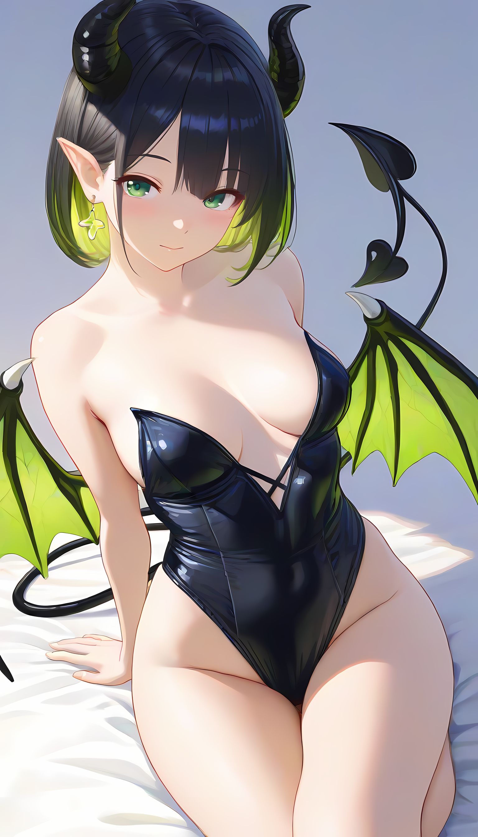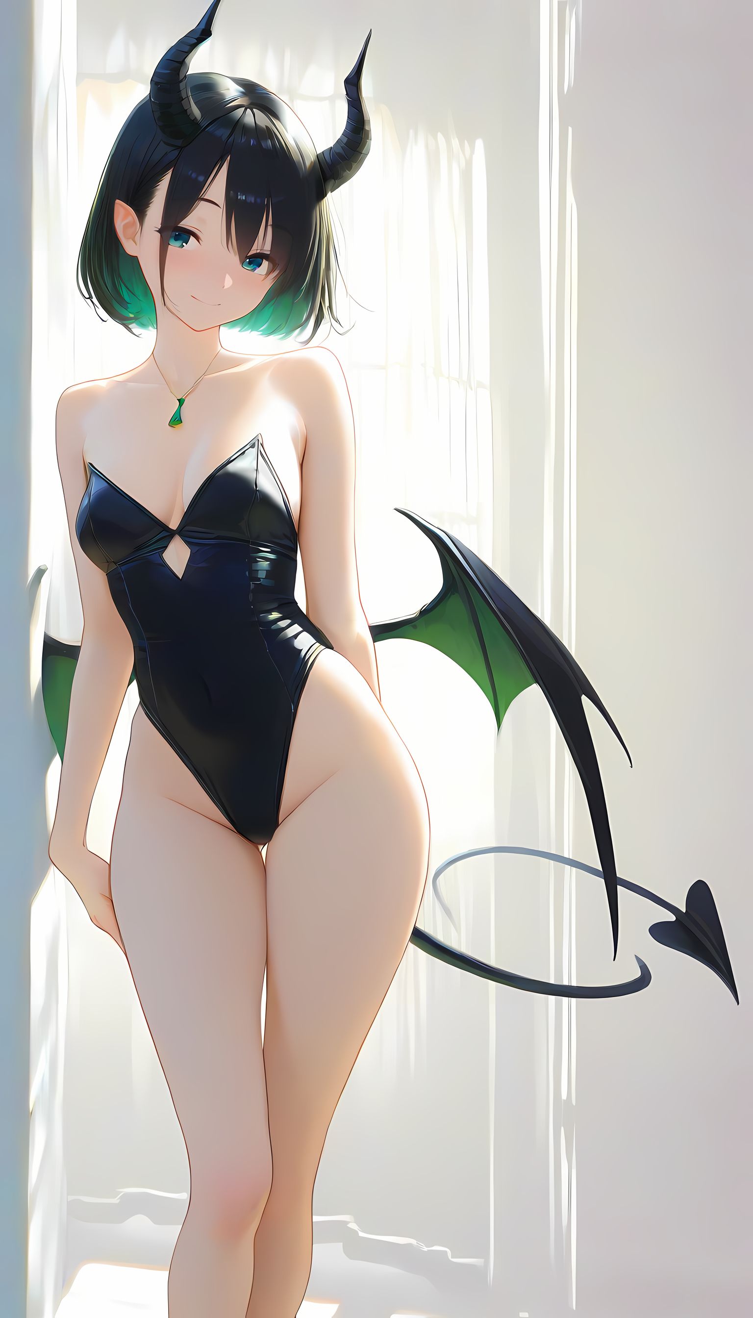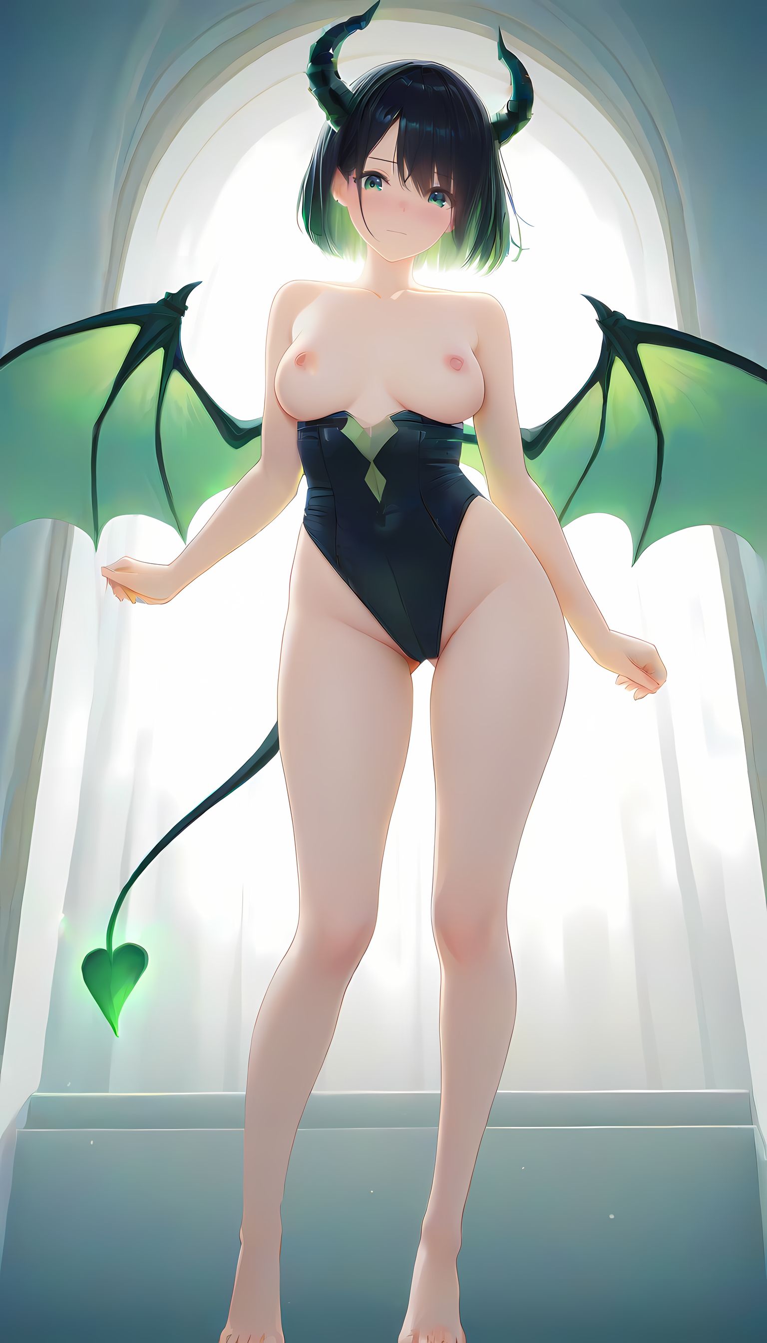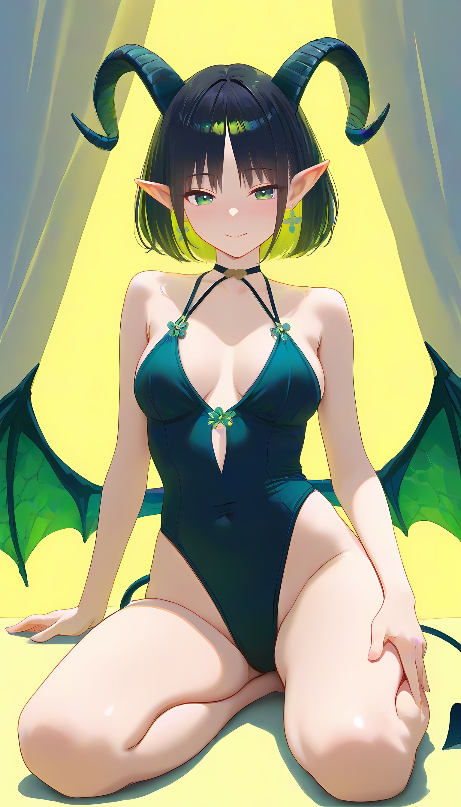 翠乃もえが着こなす「悪魔コスプレ」の情熱的なグラビア集。このAIイラストで描かれた悪魔コスプレの女性は、緑色と黒のパターンが施されたバイキングスウITに蝙蝠の翼が付いた衣装を纏い、まるで二次元から現れた蠱惑的な存在です。カメラマンの視点からは、彼女が肩を広げて微笑む姿が肉感的かつ艶やかに映り出し、フィット感のある衣装が曲線美を際立たせています。緑色と蝙蝠のテーマで構築された性的な雰囲気の中で、挑発的なアングルから捉えた彼女の無防備な表情は、観る者の興奮を誘います。 この画像を見ていても感じるような、悪魔コスプレの魅力に興味がある方は、メイド服や制服などの他のカテゴリにもぜひお越しください。様々な衣装とスタイルが待っています。