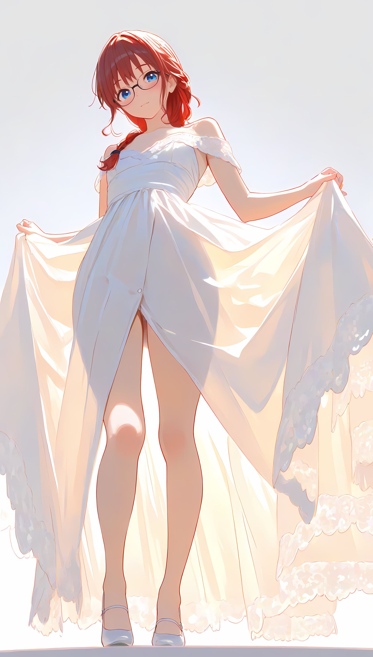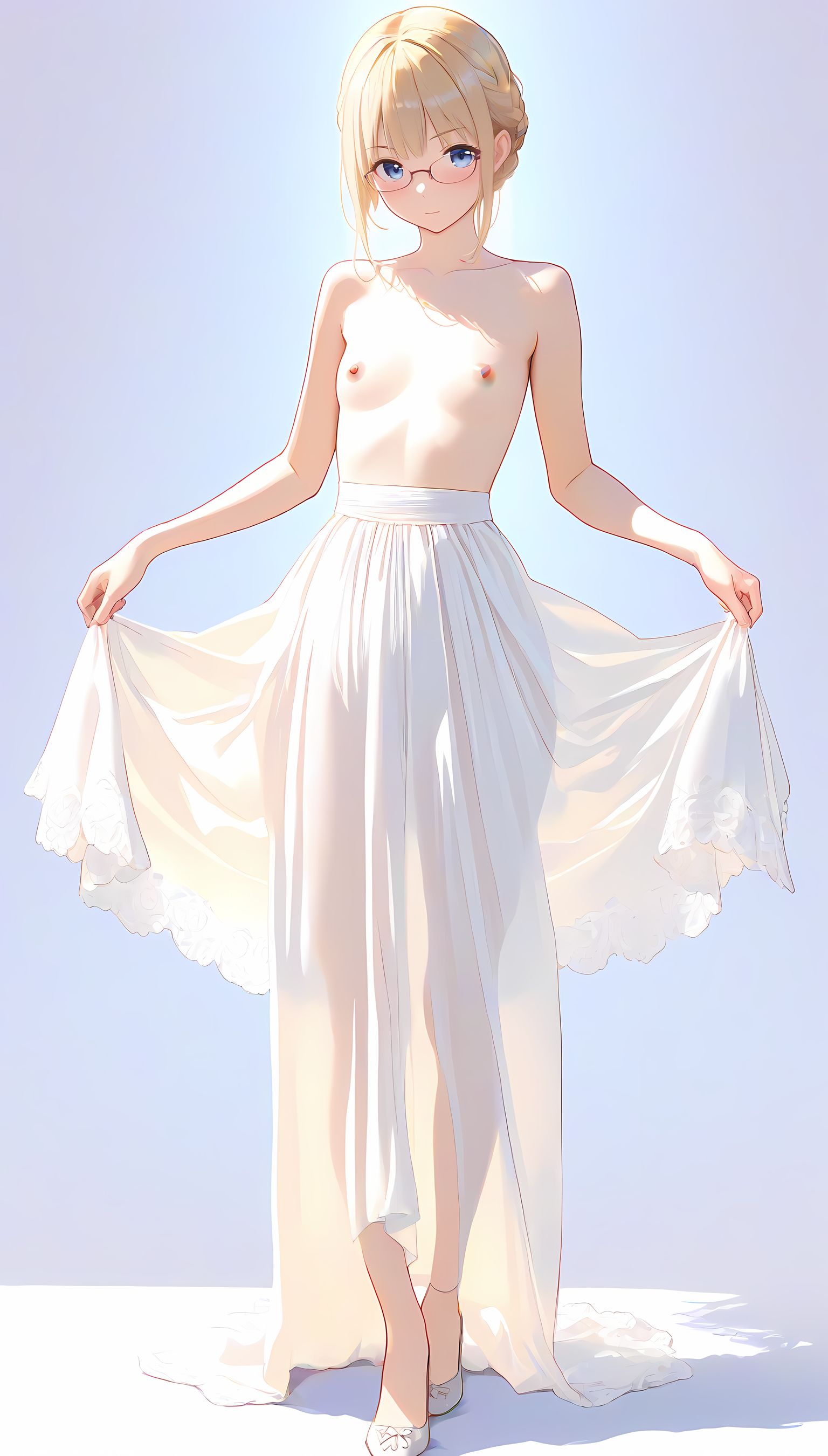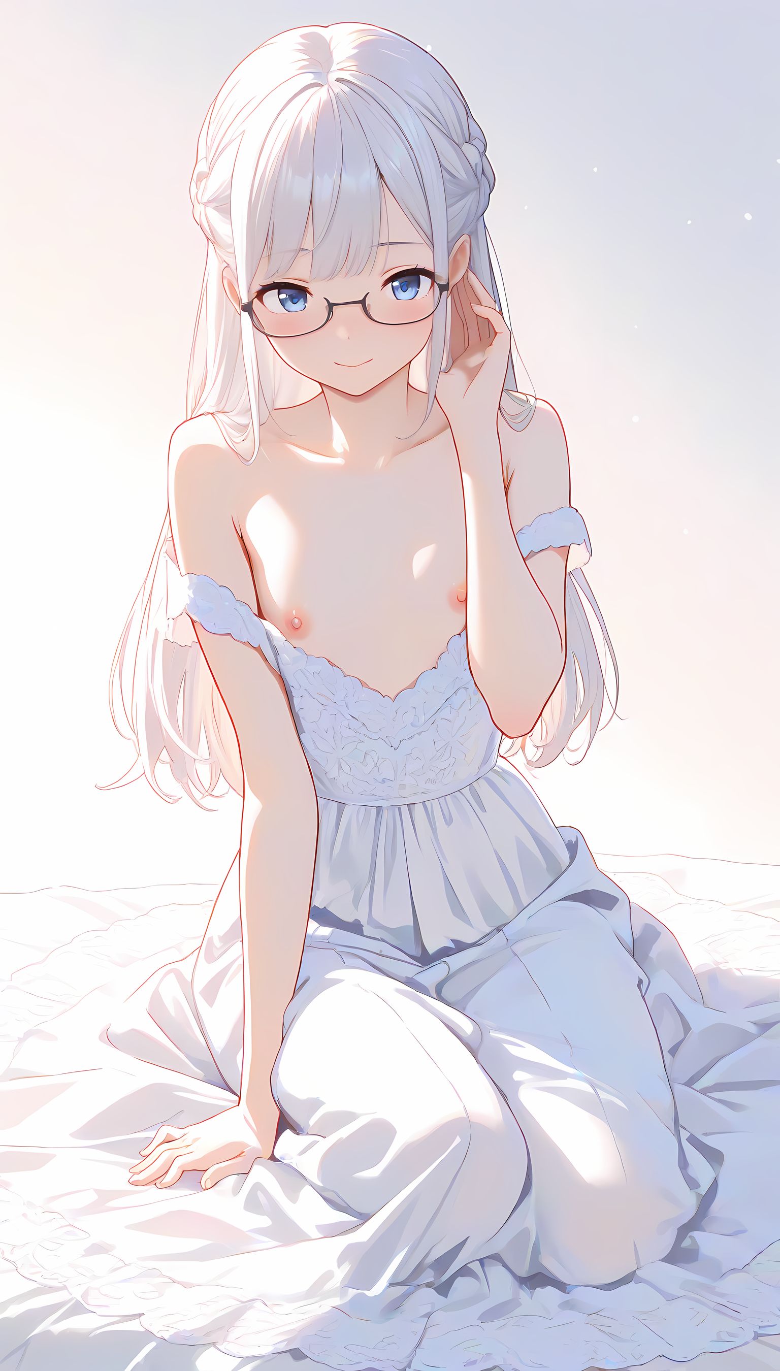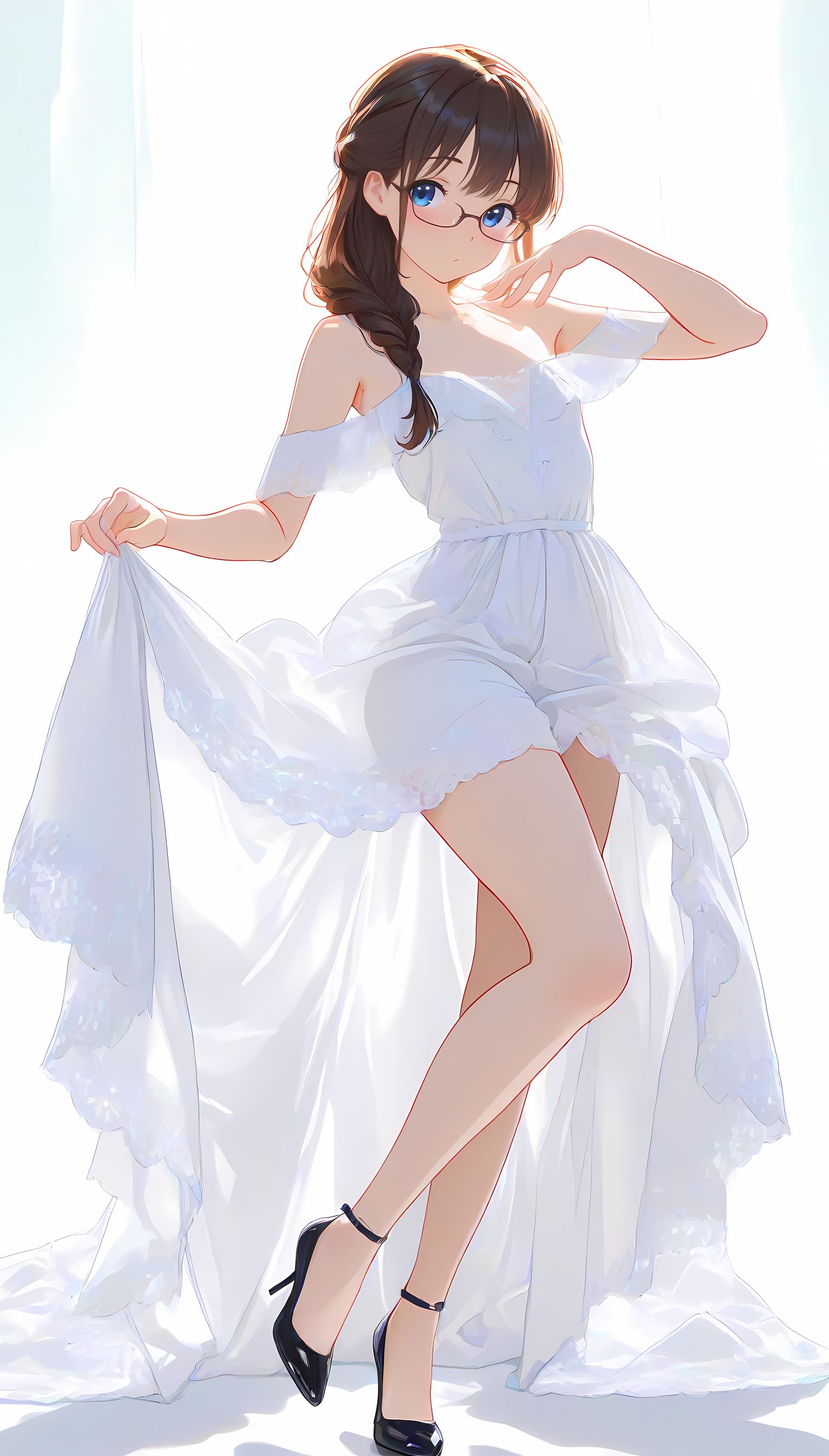 このAIイラストは二次元の世界から現れたoffshoulder-dressを披露してくれています。白と薄い色調が優雅な雰囲気を作り出し、視線を引き寄せます。彼女は右手を伸ばしながら左手には手を入れており、肩に手を添えている姿は肉感的で艶やか。上部のシンプルなデザインと下部のフールドが組み合わさり、白い肌とのフィット感は魅了します。シワや食い込みから感じられる独特の質感も蠱惑的です。微笑む表情は柔らかな光に照らされ、より一層の色香を放っています。 このoffshoulder-dress以外にも、メイド服や制服などさまざまな魅力的なジャンルが待っています。ぜひ一度ご覧ください。