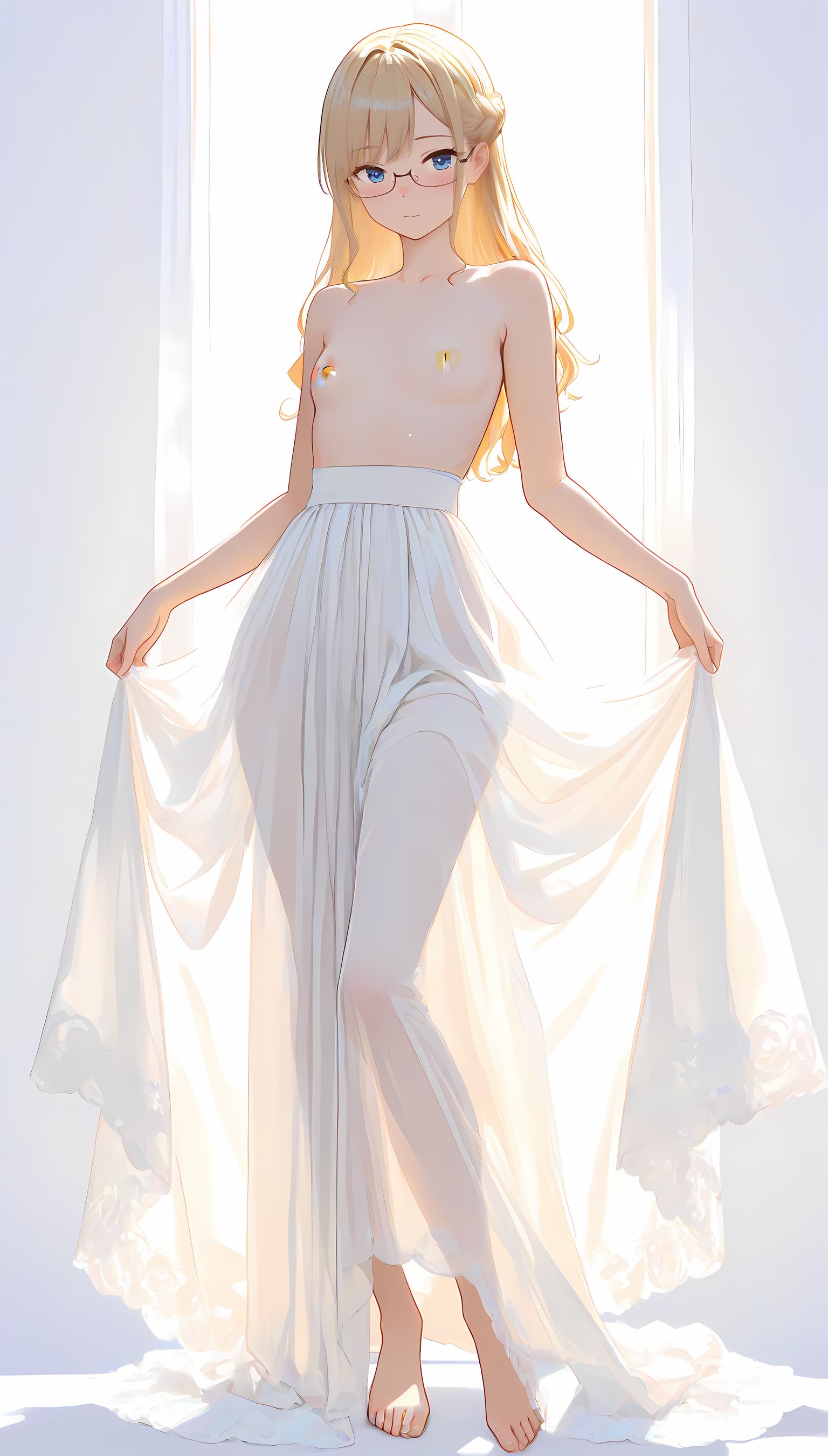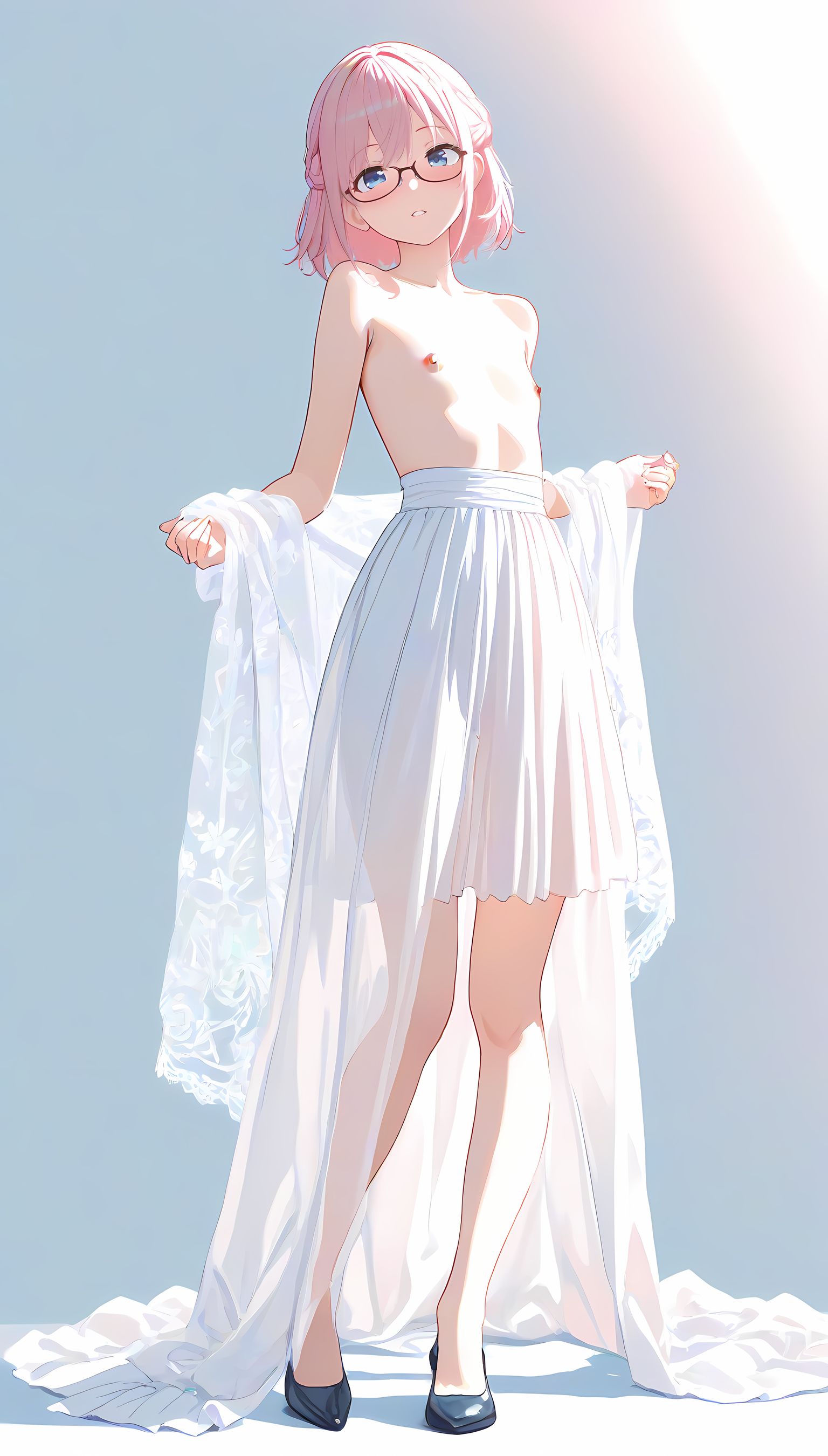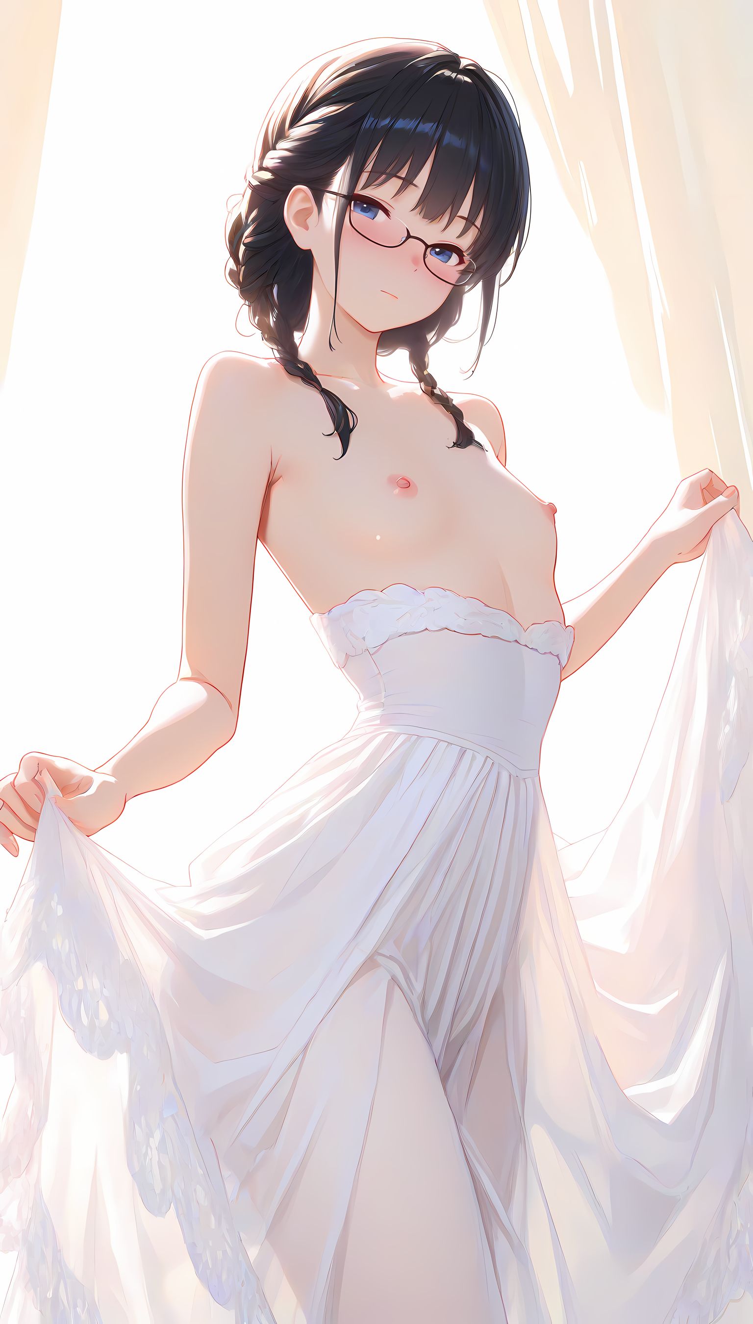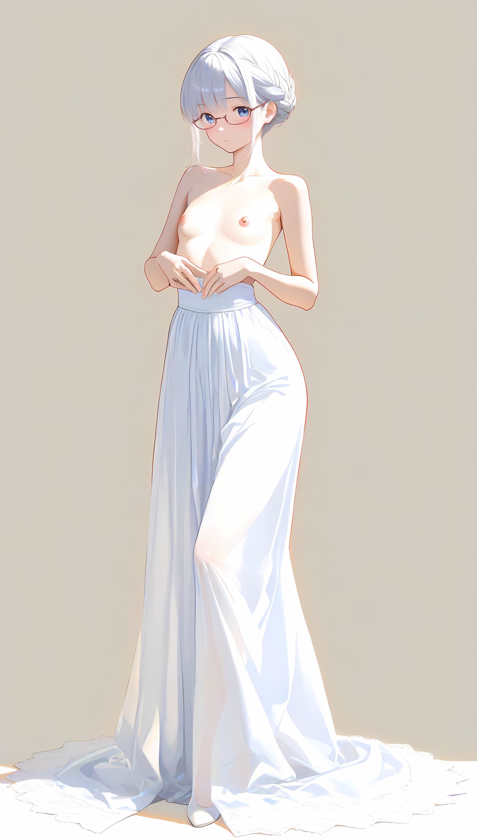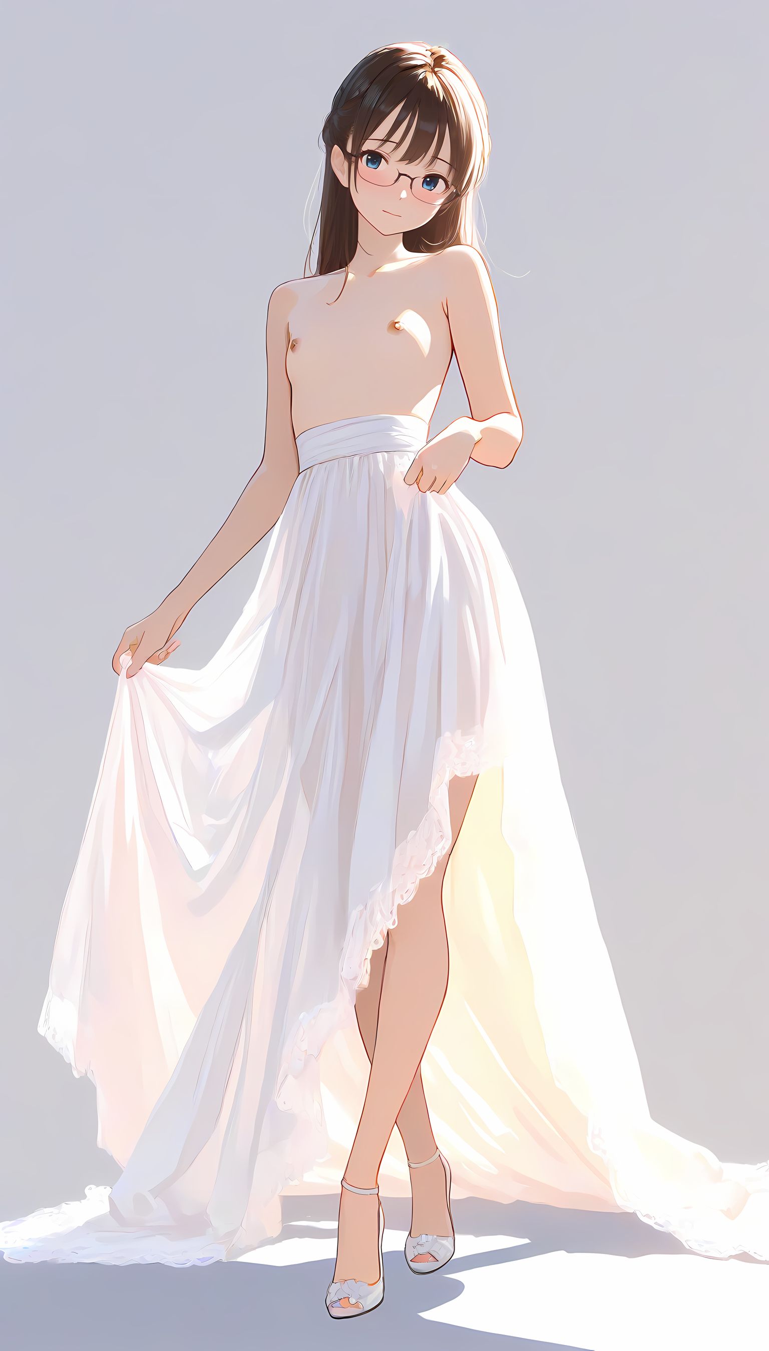 このAIイラストは二次元の世界から現れたoffshoulder-dressを披露してくれています。白と薄い色調が優雅な雰囲気を作り出し、視線を引き寄せます。彼女は右手を伸ばしながら左手には手を入れており、肩に手を添えている姿は肉感的で艶やか。上部のシンプルなデザインと下部のフールドが組み合わさり、白い肌とのフィット感は魅了します。シワや食い込みから感じられる独特の質感も蠱惑的です。微笑む表情は柔らかな光に照らされ、より一層の色香を放っています。 このoffshoulder-dress以外にも、メイド服や制服などさまざまな魅力的なジャンルが待っています。ぜひ一度ご覧ください。