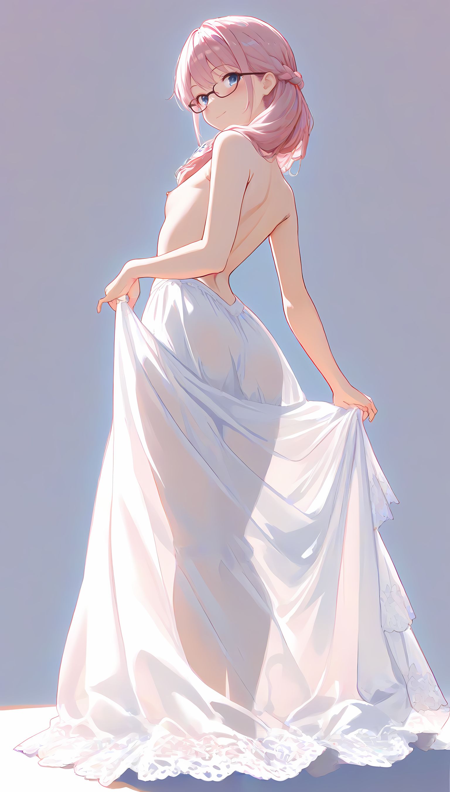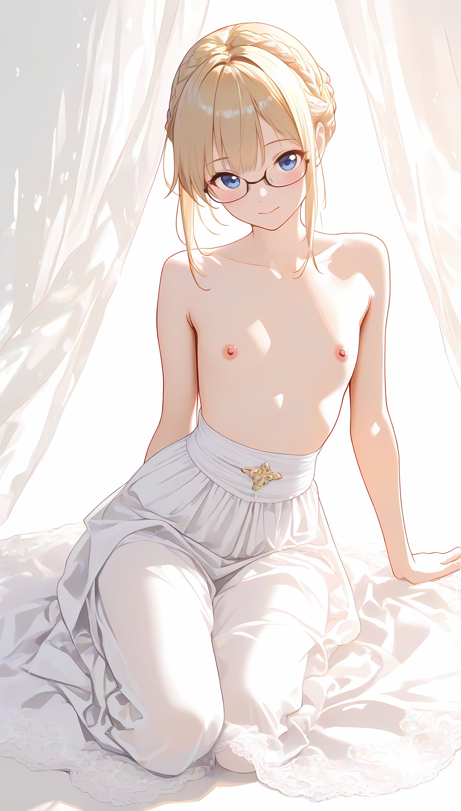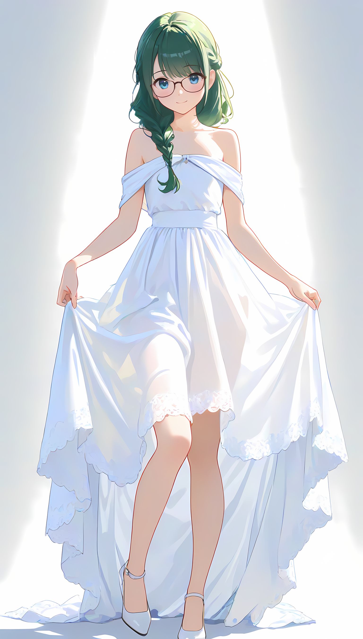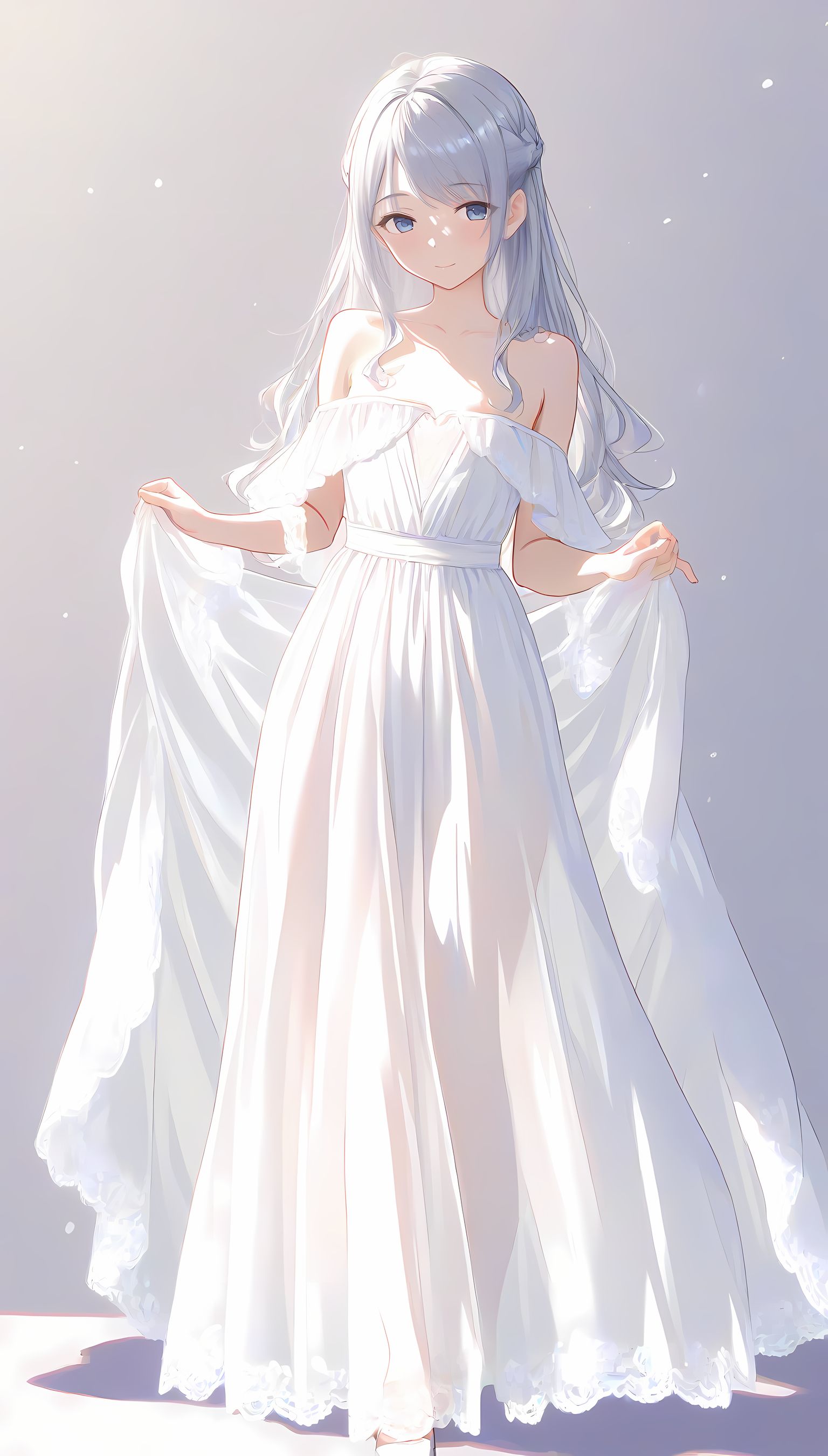 このAIイラストは二次元の世界から現れたoffshoulder-dressを披露してくれています。白と薄い色調が優雅な雰囲気を作り出し、視線を引き寄せます。彼女は右手を伸ばしながら左手には手を入れており、肩に手を添えている姿は肉感的で艶やか。上部のシンプルなデザインと下部のフールドが組み合わさり、白い肌とのフィット感は魅了します。シワや食い込みから感じられる独特の質感も蠱惑的です。微笑む表情は柔らかな光に照らされ、より一層の色香を放っています。 このoffshoulder-dress以外にも、メイド服や制服などさまざまな魅力的なジャンルが待っています。ぜひ一度ご覧ください。