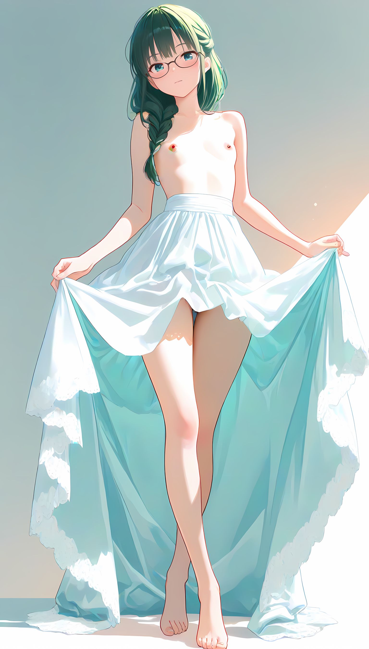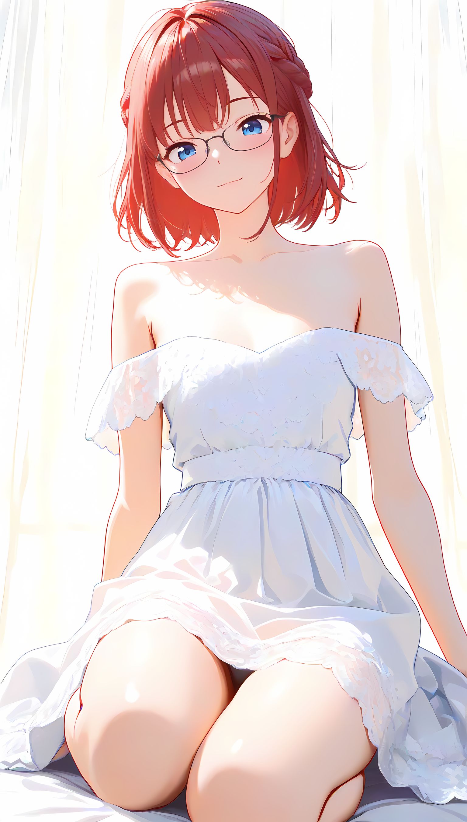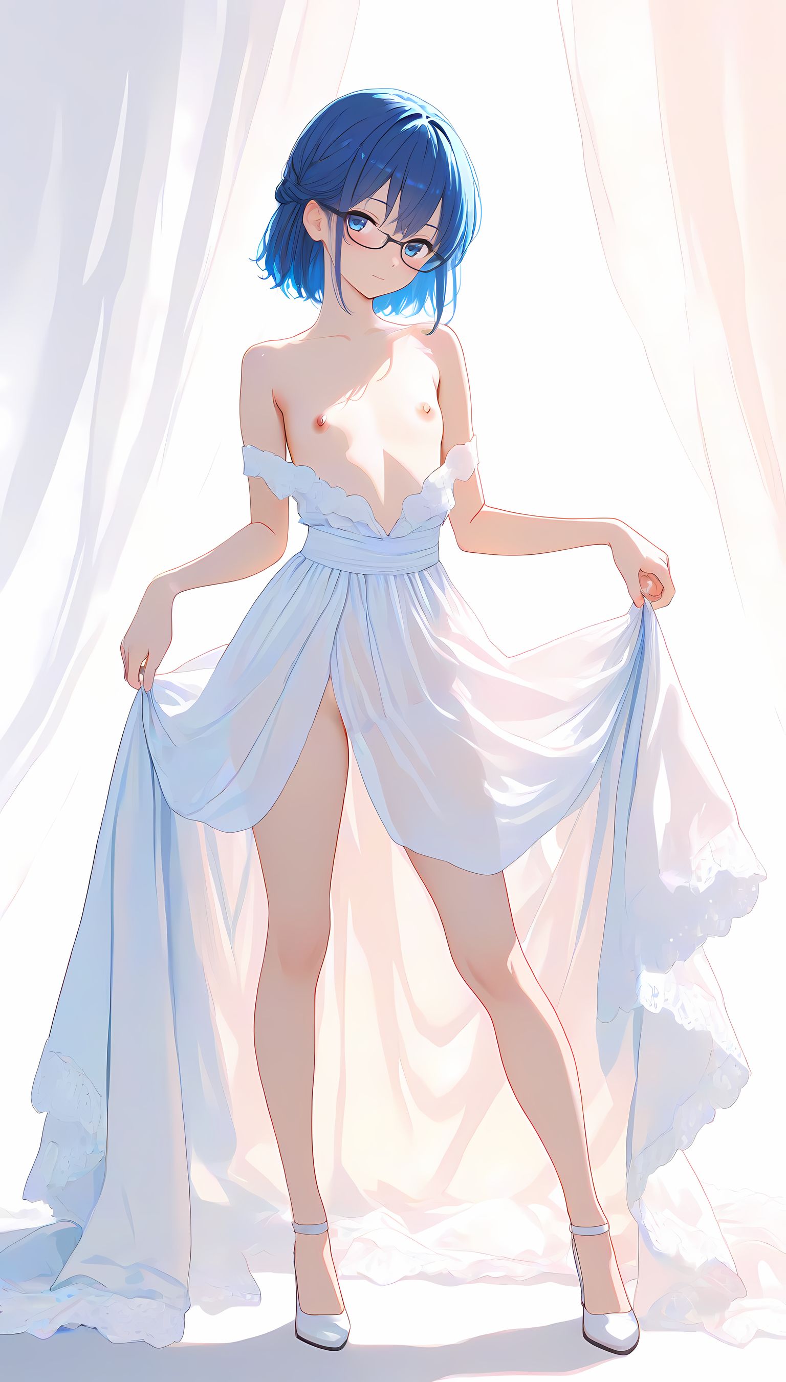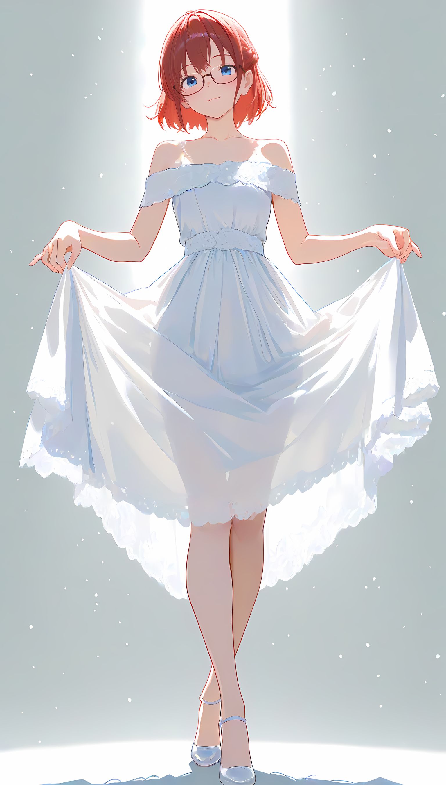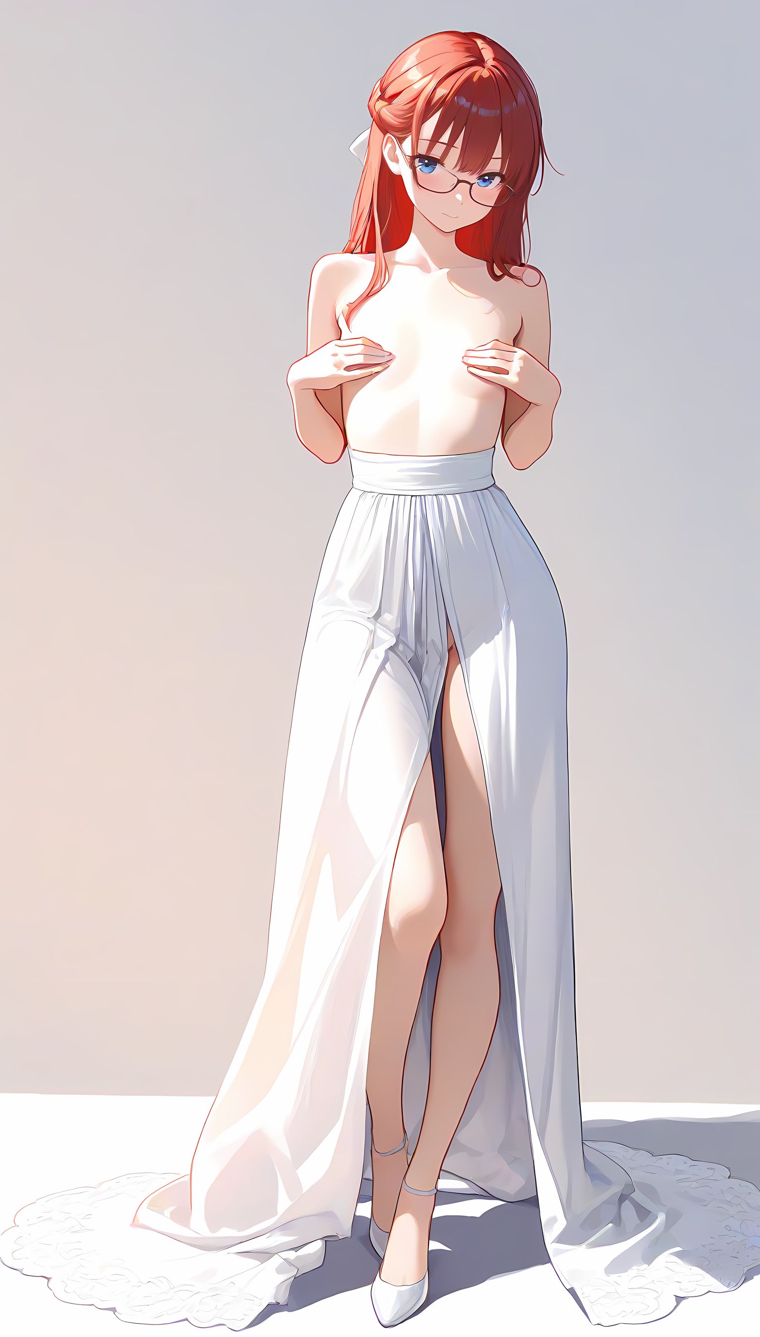 このAIイラストは二次元の世界から現れたoffshoulder-dressを披露してくれています。白と薄い色調が優雅な雰囲気を作り出し、視線を引き寄せます。彼女は右手を伸ばしながら左手には手を入れており、肩に手を添えている姿は肉感的で艶やか。上部のシンプルなデザインと下部のフールドが組み合わさり、白い肌とのフィット感は魅了します。シワや食い込みから感じられる独特の質感も蠱惑的です。微笑む表情は柔らかな光に照らされ、より一層の色香を放っています。 このoffshoulder-dress以外にも、メイド服や制服などさまざまな魅力的なジャンルが待っています。ぜひ一度ご覧ください。