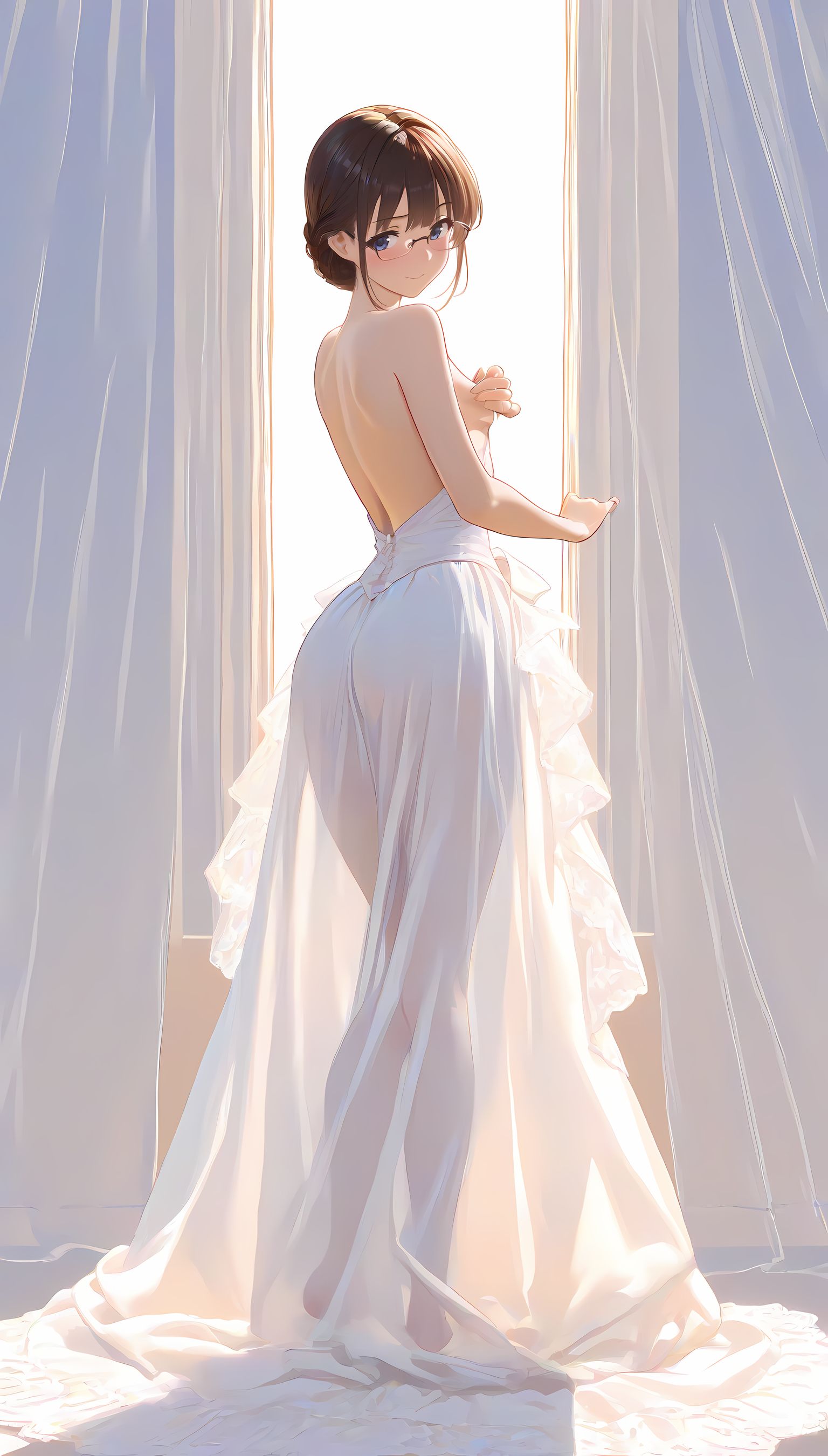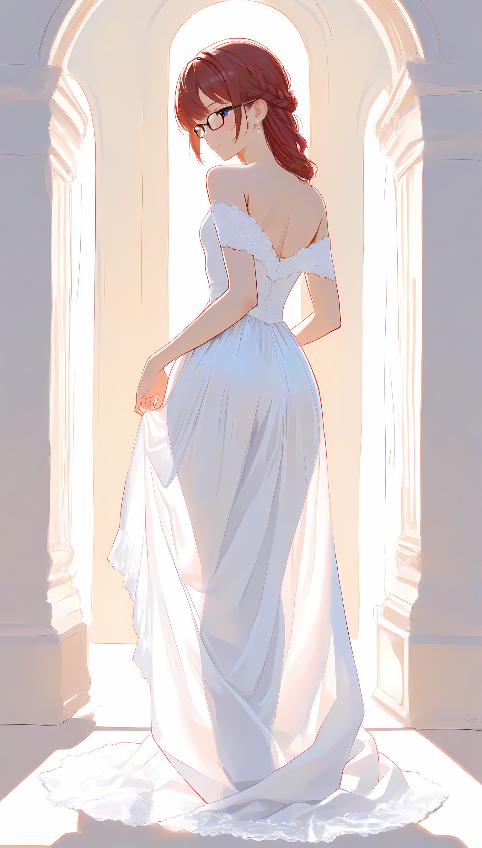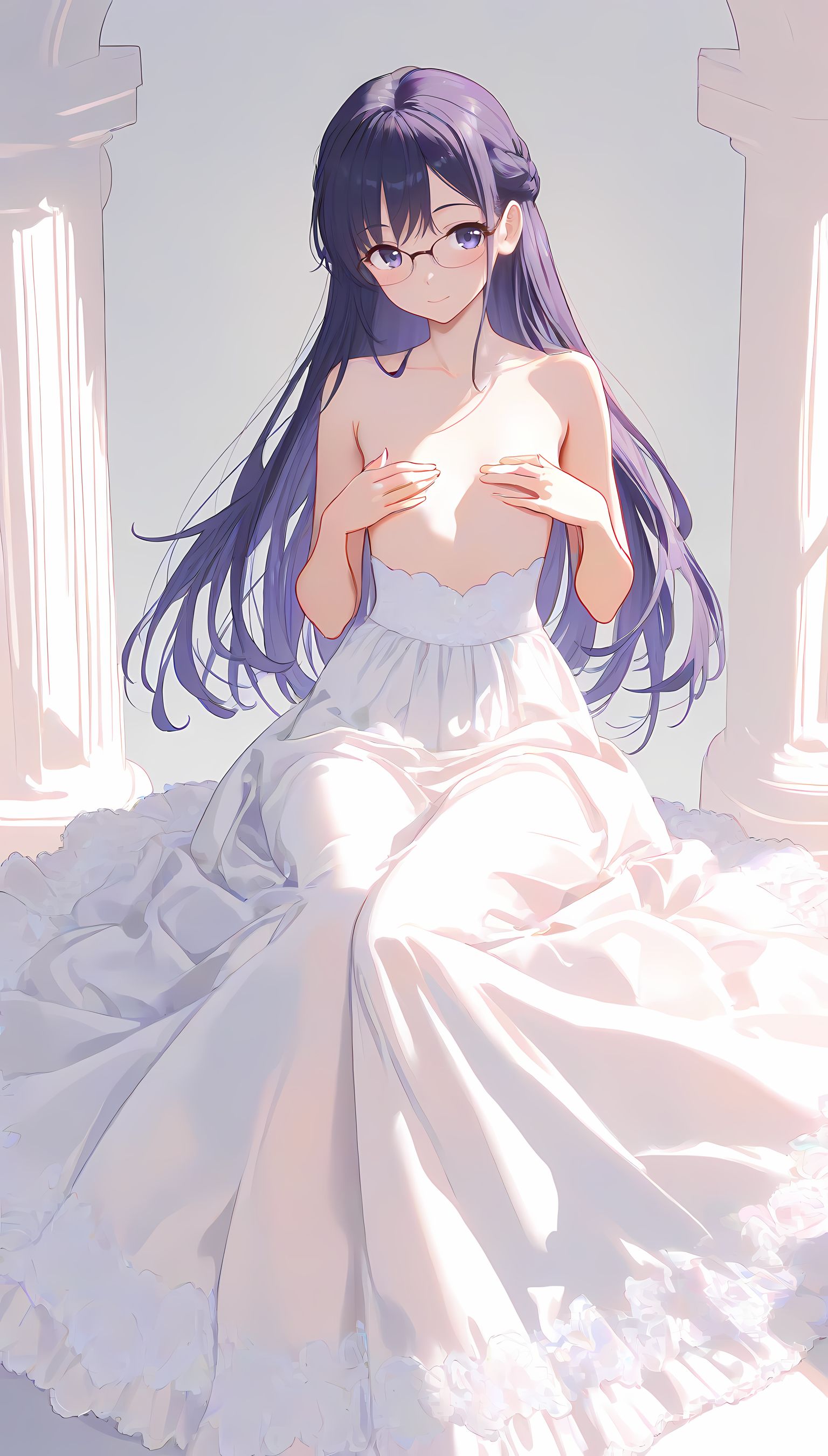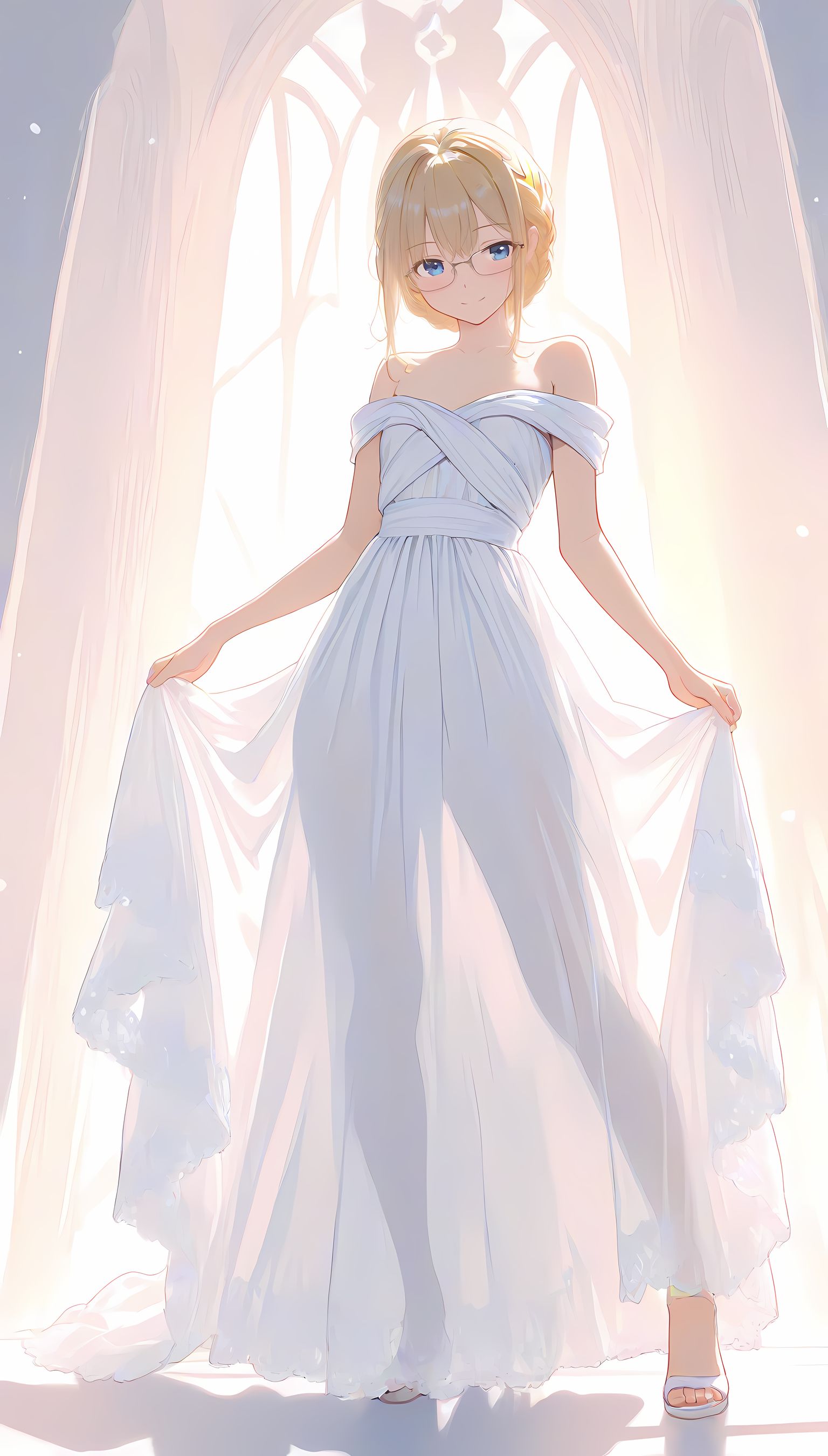 このAIイラストは二次元の世界から現れたoffshoulder-dressを披露してくれています。白と薄い色調が優雅な雰囲気を作り出し、視線を引き寄せます。彼女は右手を伸ばしながら左手には手を入れており、肩に手を添えている姿は肉感的で艶やか。上部のシンプルなデザインと下部のフールドが組み合わさり、白い肌とのフィット感は魅了します。シワや食い込みから感じられる独特の質感も蠱惑的です。微笑む表情は柔らかな光に照らされ、より一層の色香を放っています。 このoffshoulder-dress以外にも、メイド服や制服などさまざまな魅力的なジャンルが待っています。ぜひ一度ご覧ください。