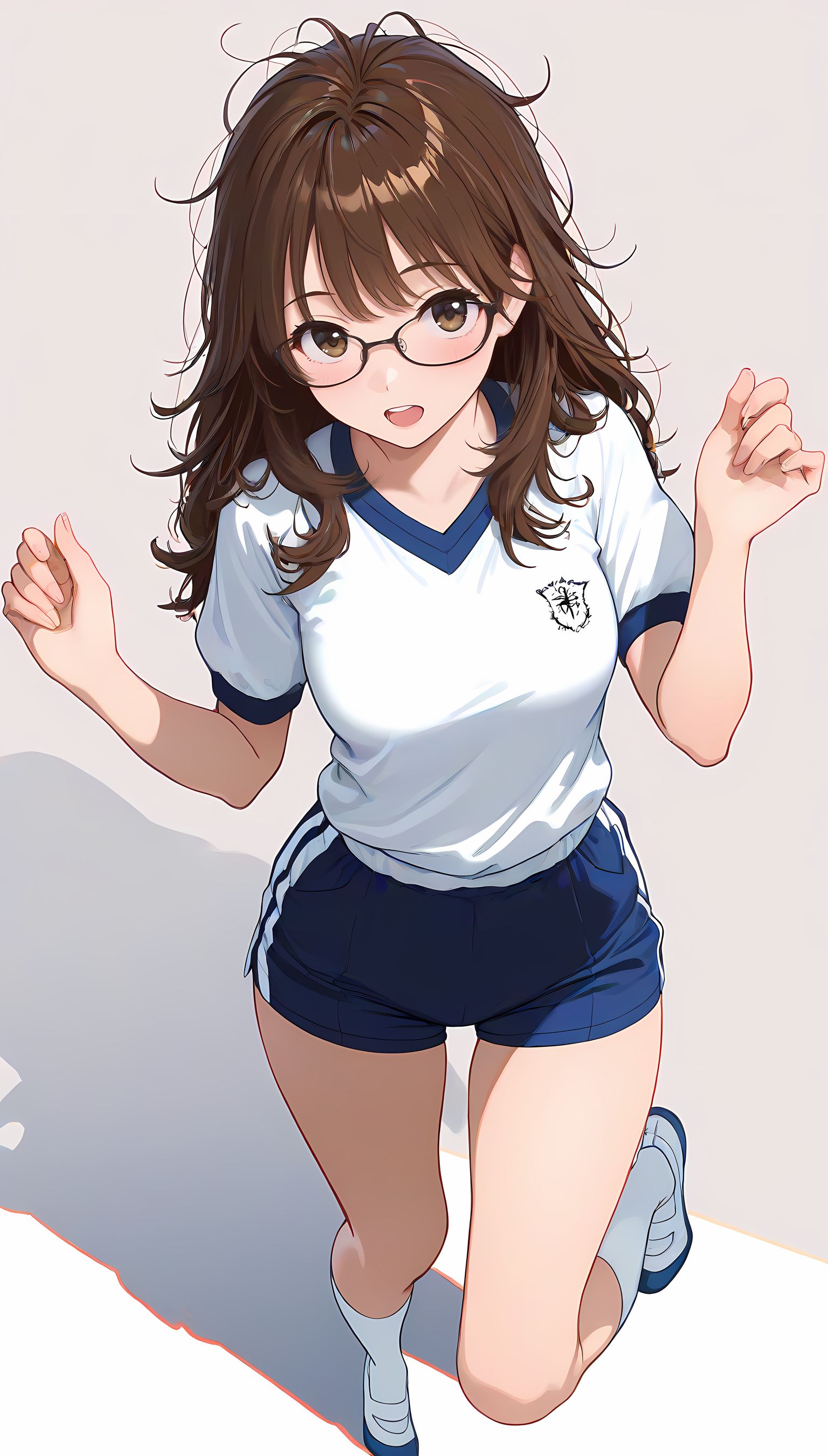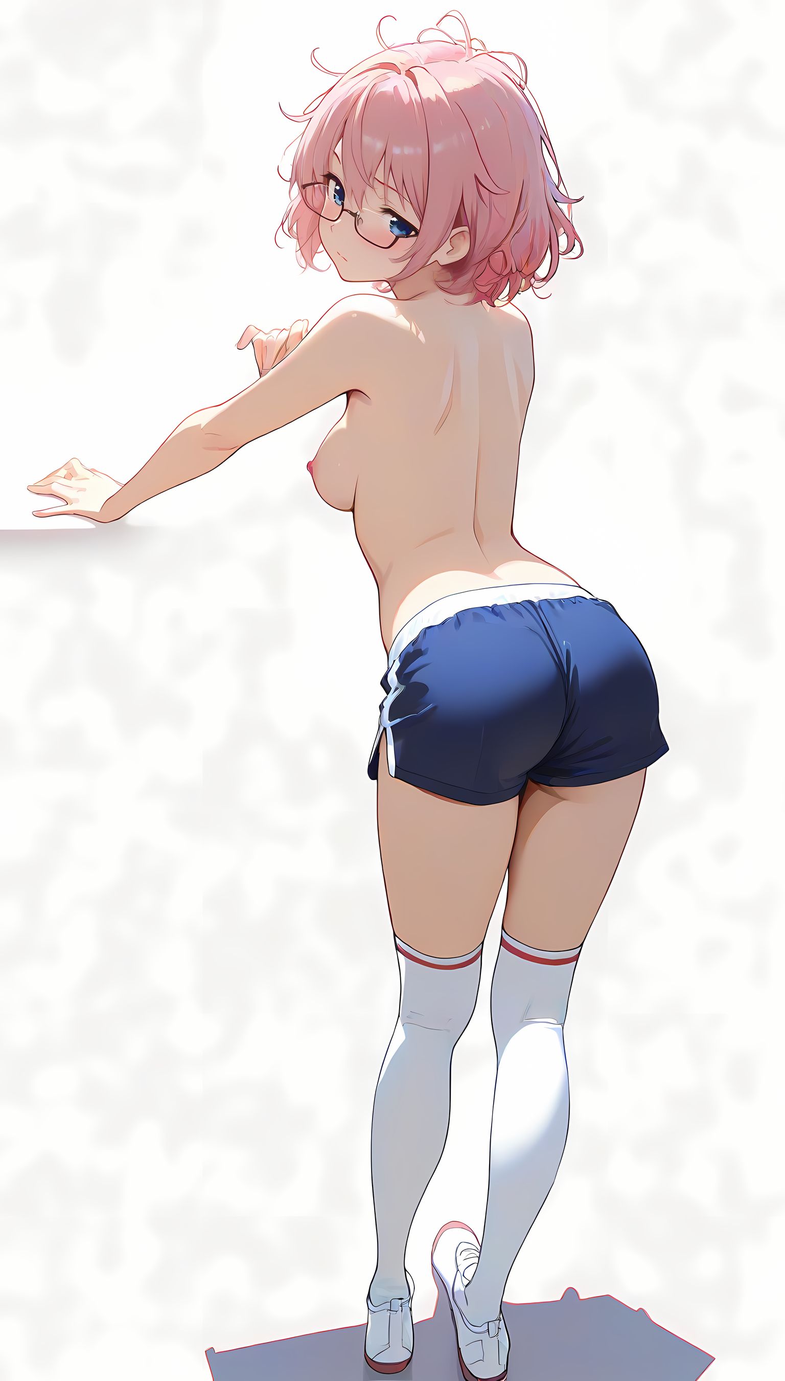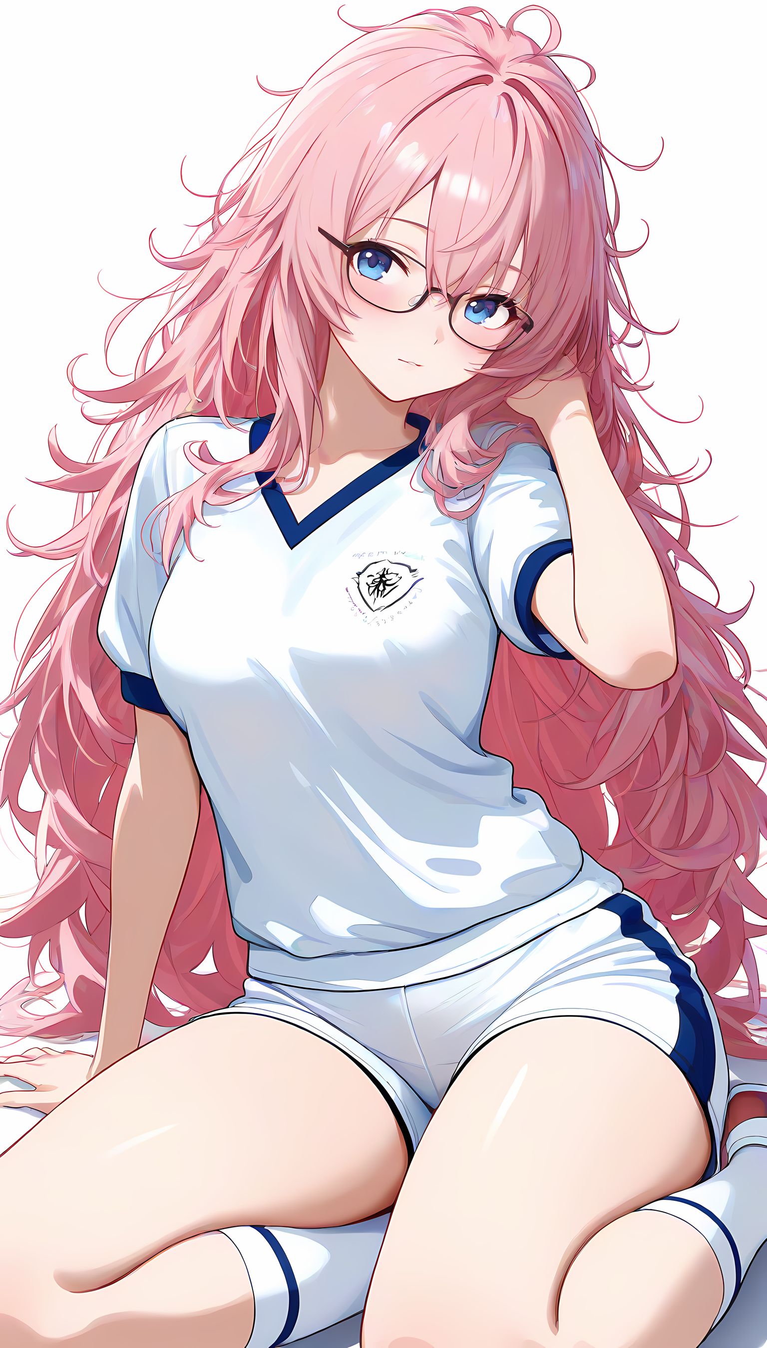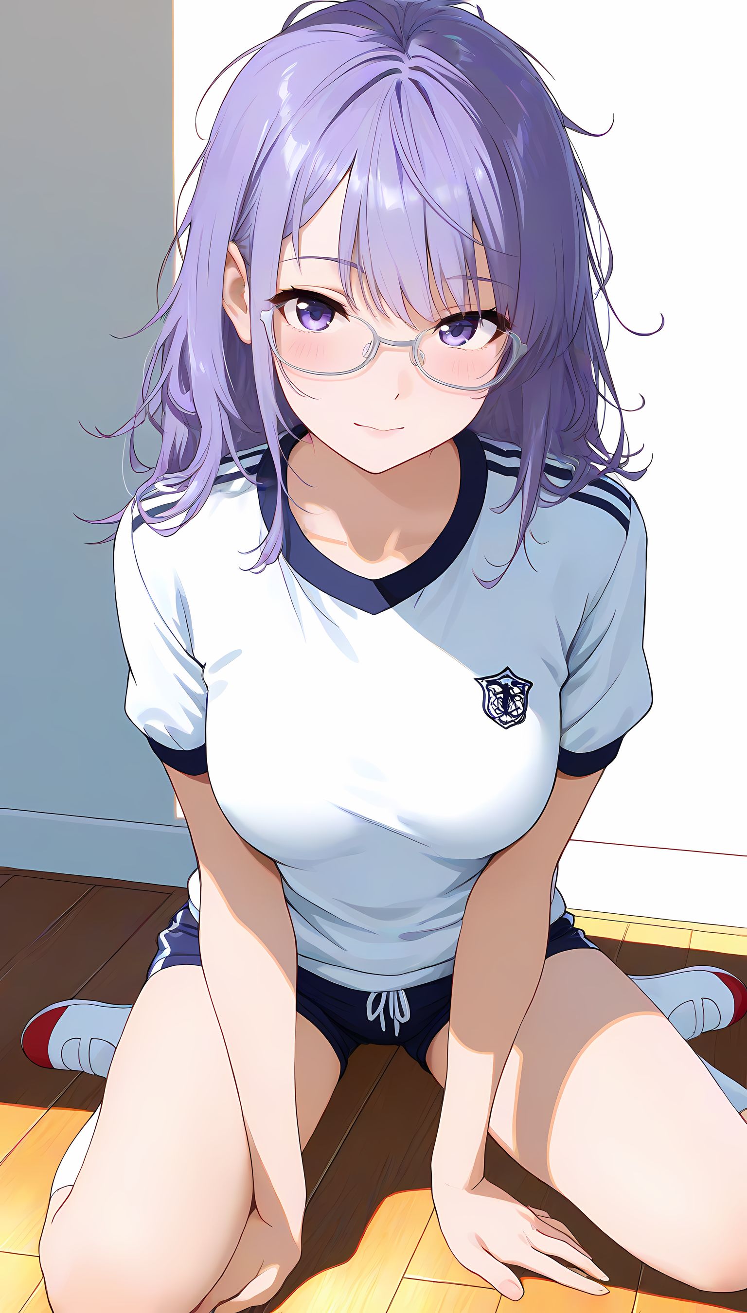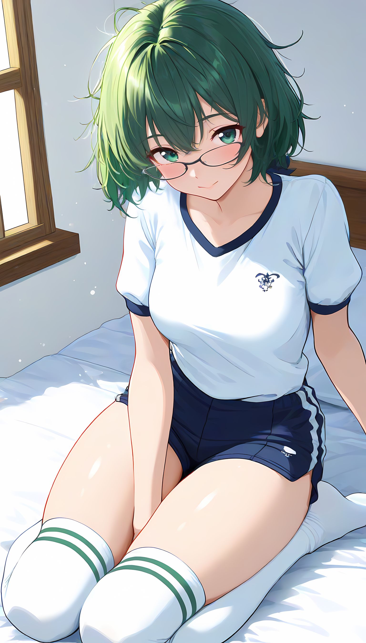 この一枚の写真は、まるでカメラマンの視点から見つめられたような、軽い艶やかさと肉感的なフィット感が特徴です。白ティシャツとブルーサイドストアンク、そして白ソックスを纏った女性の姿は、彼女の柔らかなブルマが引き立て、曲線美を際立たせています。その表情は微笑みながらも、少し挑発的な輝きが光っています。瞬間的な歪みと舒やかな微笑みが交差し、観る者の心を蠱惑的に操ります。